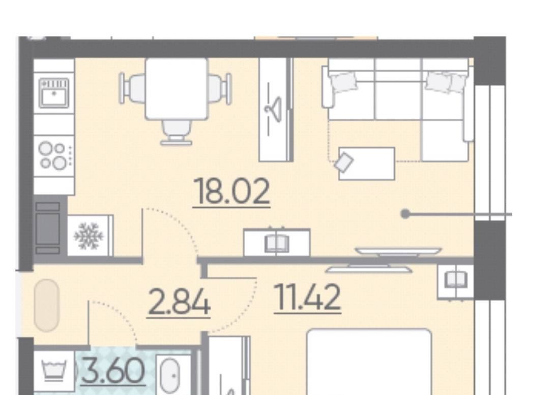 1-комнатная квартира: Санкт-Петербург, улица Александра Матросова, 3 (38 м²)