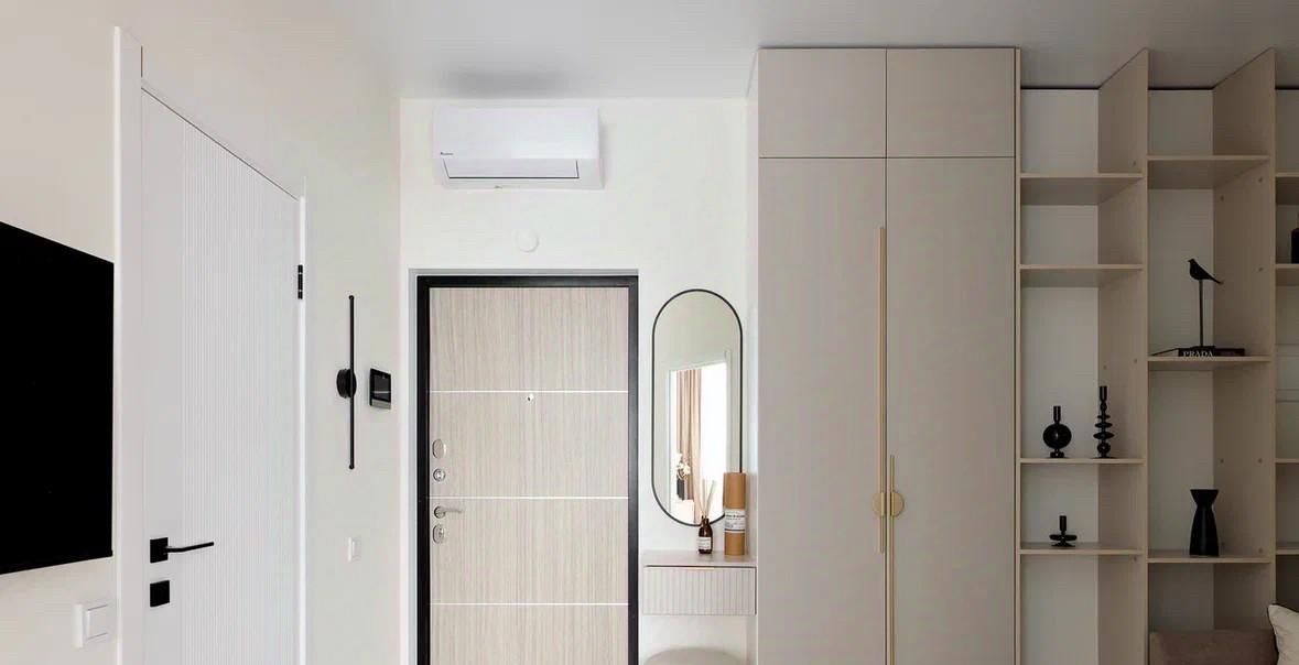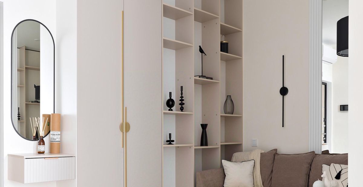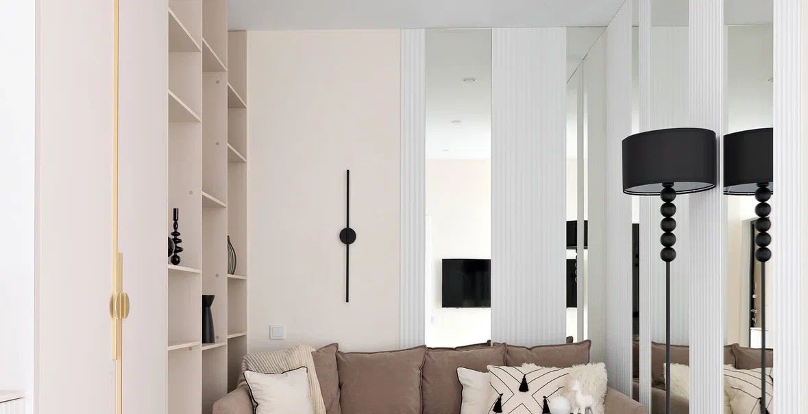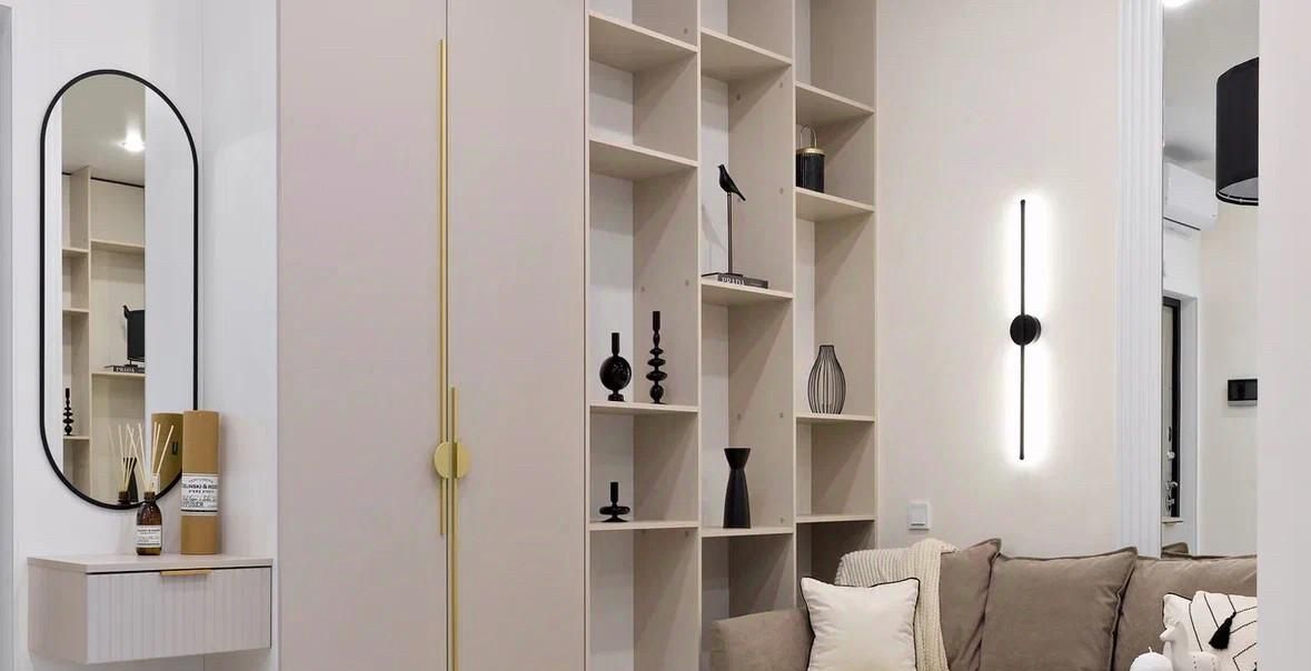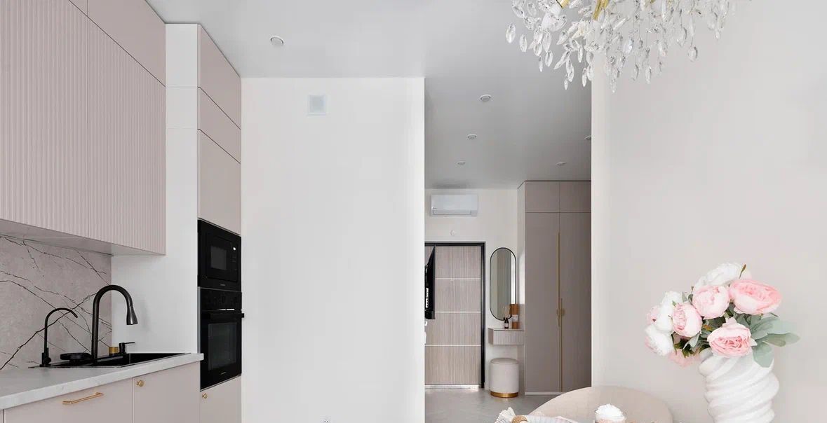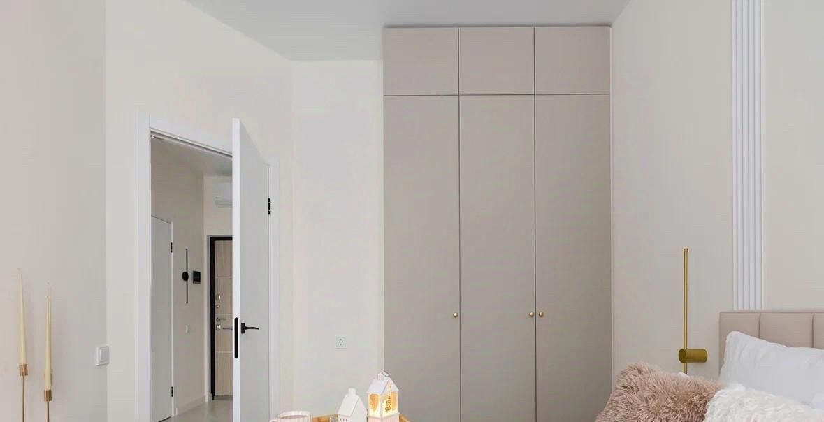 - Встроенная мебель в потолок (вся), что дает много места под хранение.