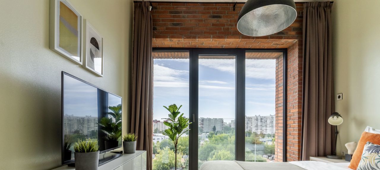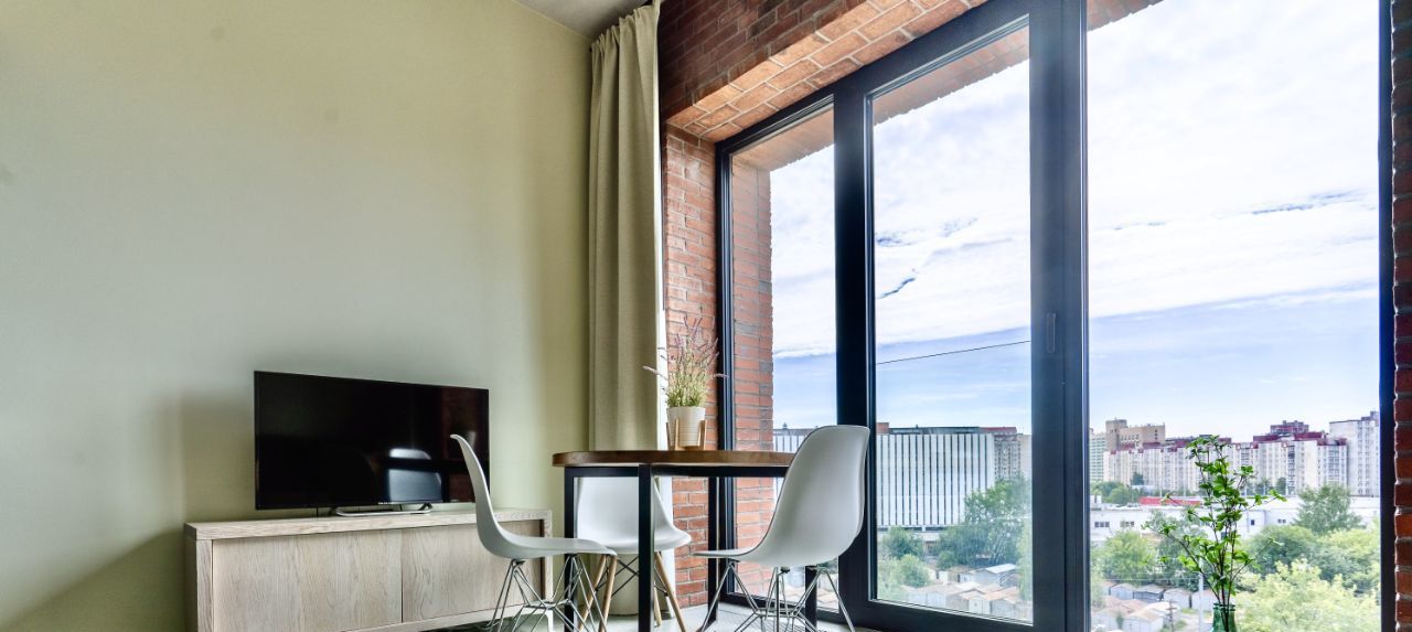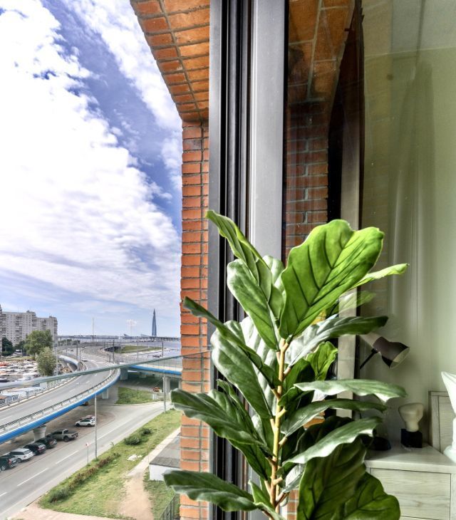 Огромное окно в пол в комнате и на кухне - будете видеть закат прямо из окон. Высота потолков более 3-х метров, вид из окна на город и частично на воду, Лахту и стадион Газпром-Арена.