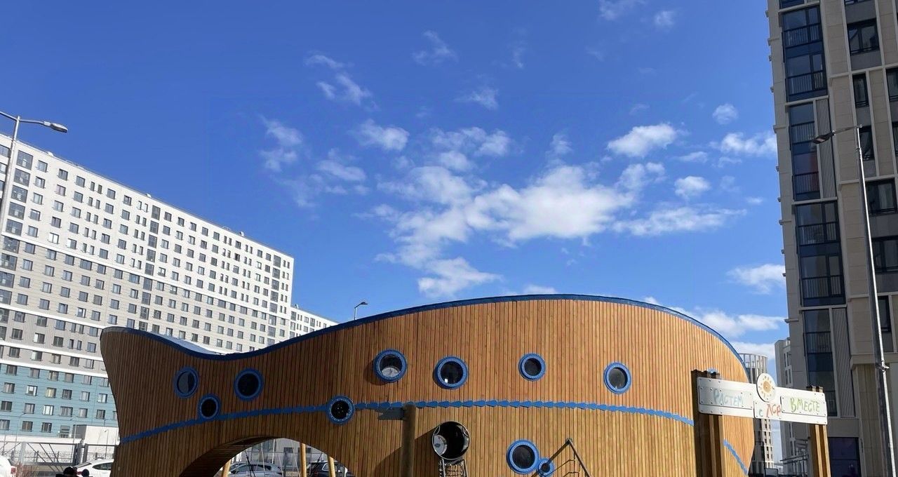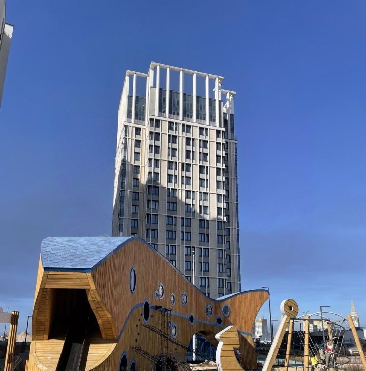 С хорошим качеством строительства. Дворы размером с футбольное поле. И с парковым озеленением. Во дворе детские площадки и спортивные тренажеры уже установлены и полностью функционируют!