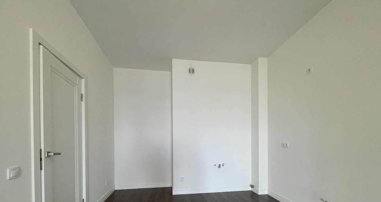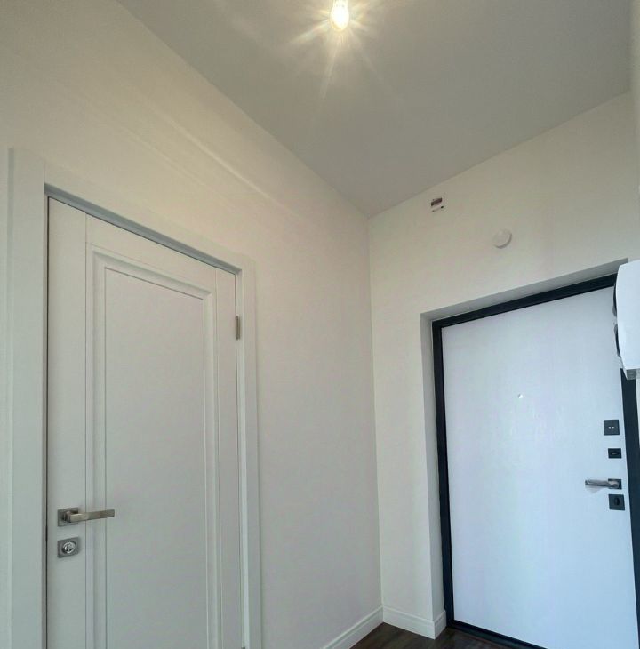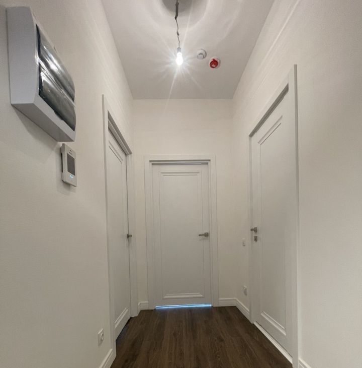 Белые антивандальные фактурные обои под покраску в комнате, ламинат 32 класса, электроразводка, клапаны фильтрации воздуха, радиаторы с термостатом.