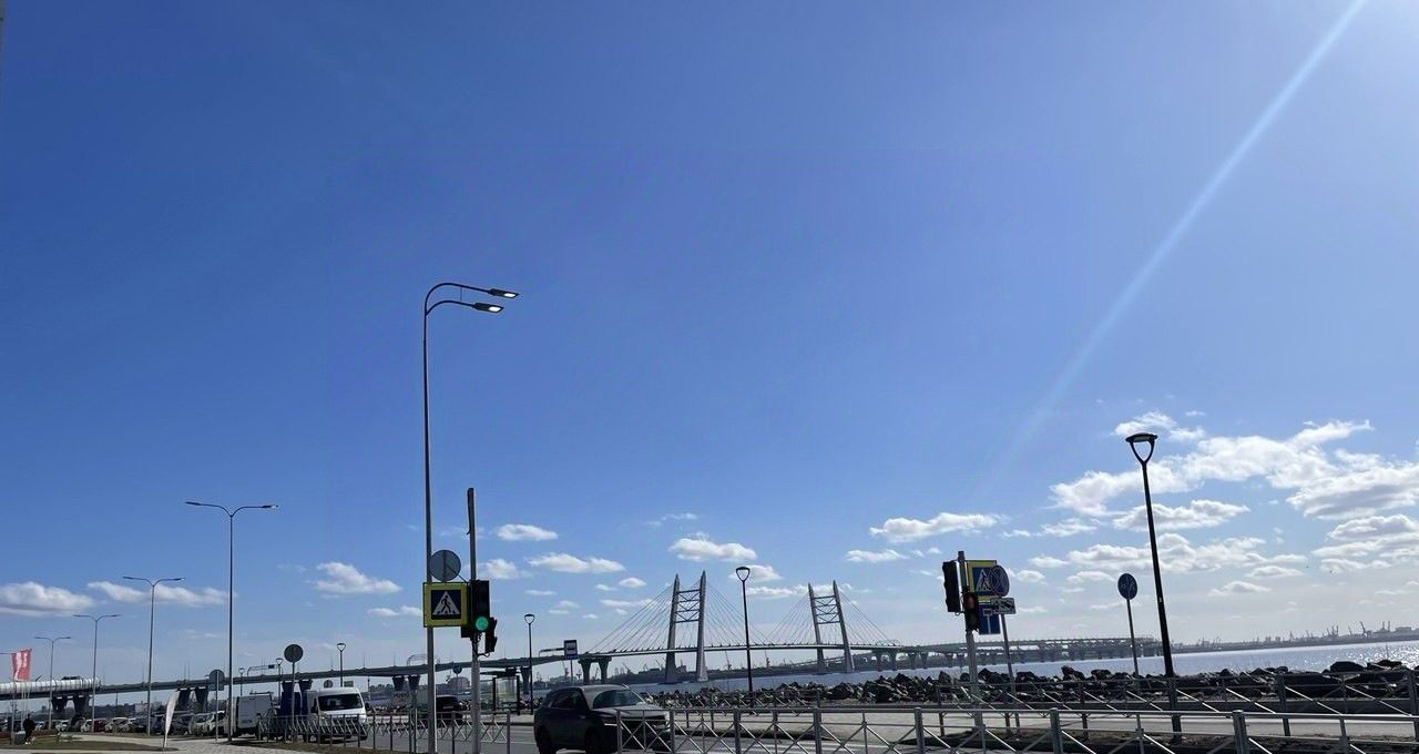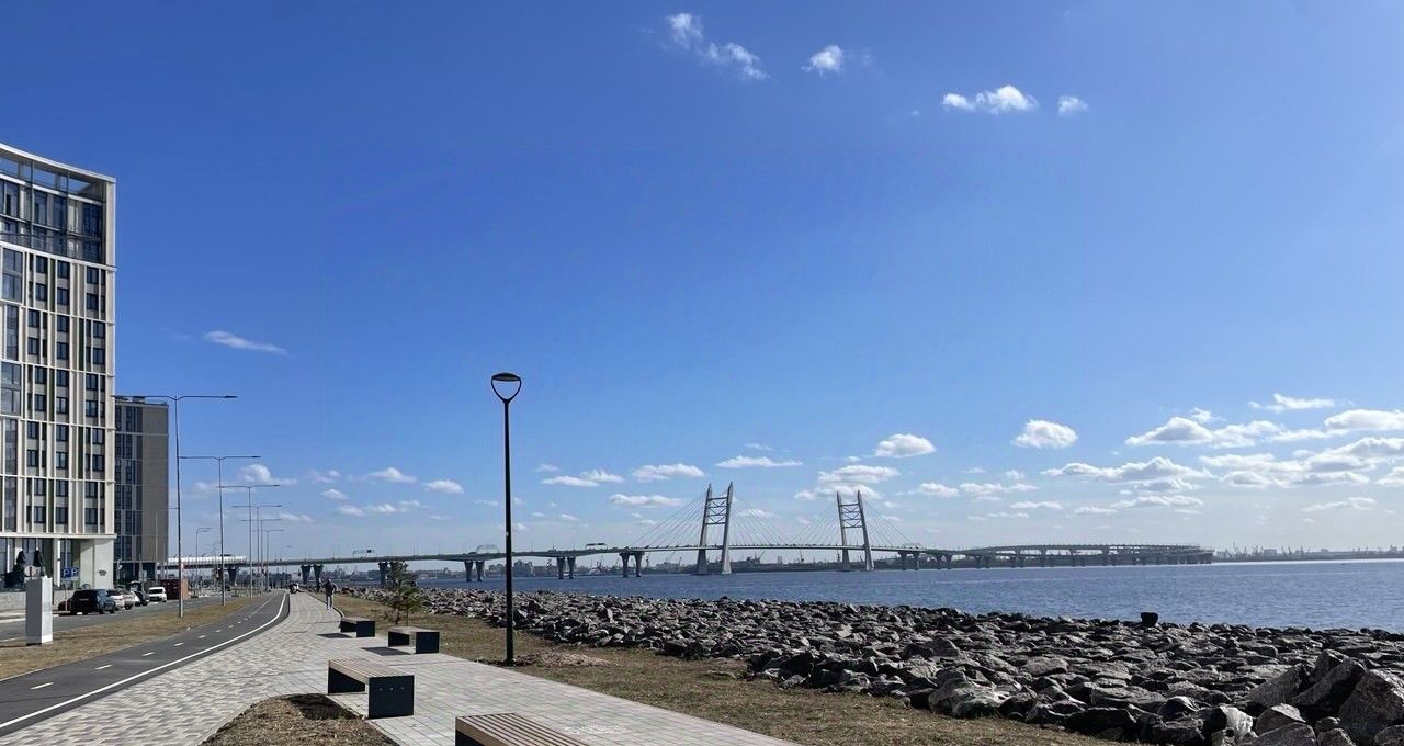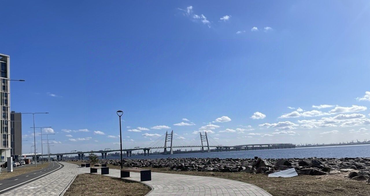 Все окна выходят на Мост и Залив, который не будет никогда застраиваться, так же красивый обзор на внутренний двор комплекса, где вы будете не переживать за своих детей отпуская их во двор. Удобная локация 10 минут езды до центры города и Петроградки, 1 минута и выезд на ЗСД!