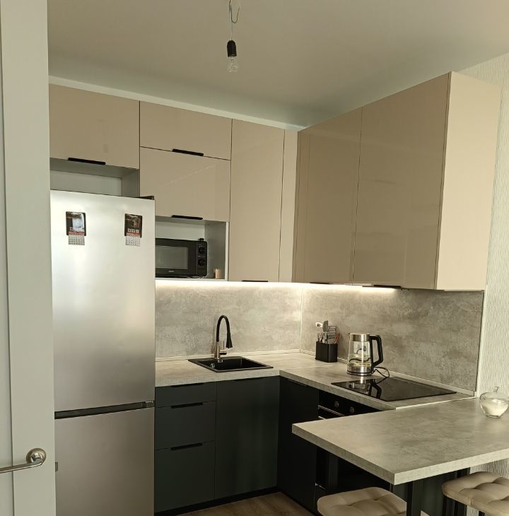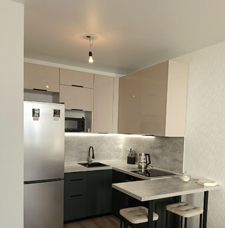 В квартире выполнен дизайнерский ремонт, что создаёт атмосферу уюта и стиля. Просторная кухня оснащена необходимой мебелью и техникой( СВЧ, чайник, холодильник, электроплита). В комнате сейчас нет спального места, оно будет приобретено под клиента. Кухня- гостиная. Там находится диван- кровать. Ванная комната оборудована ванной. Комфортный микроклимат в квартире .Есть доступ к интернету.