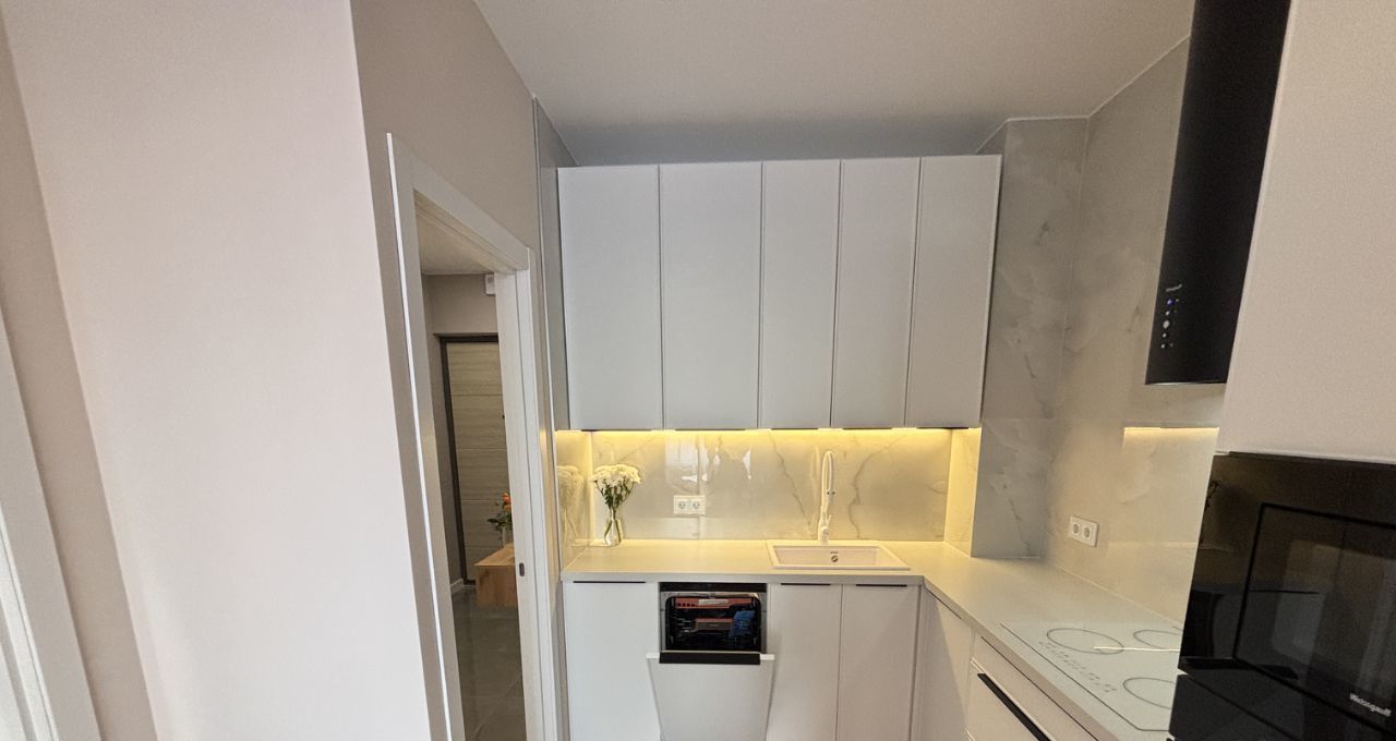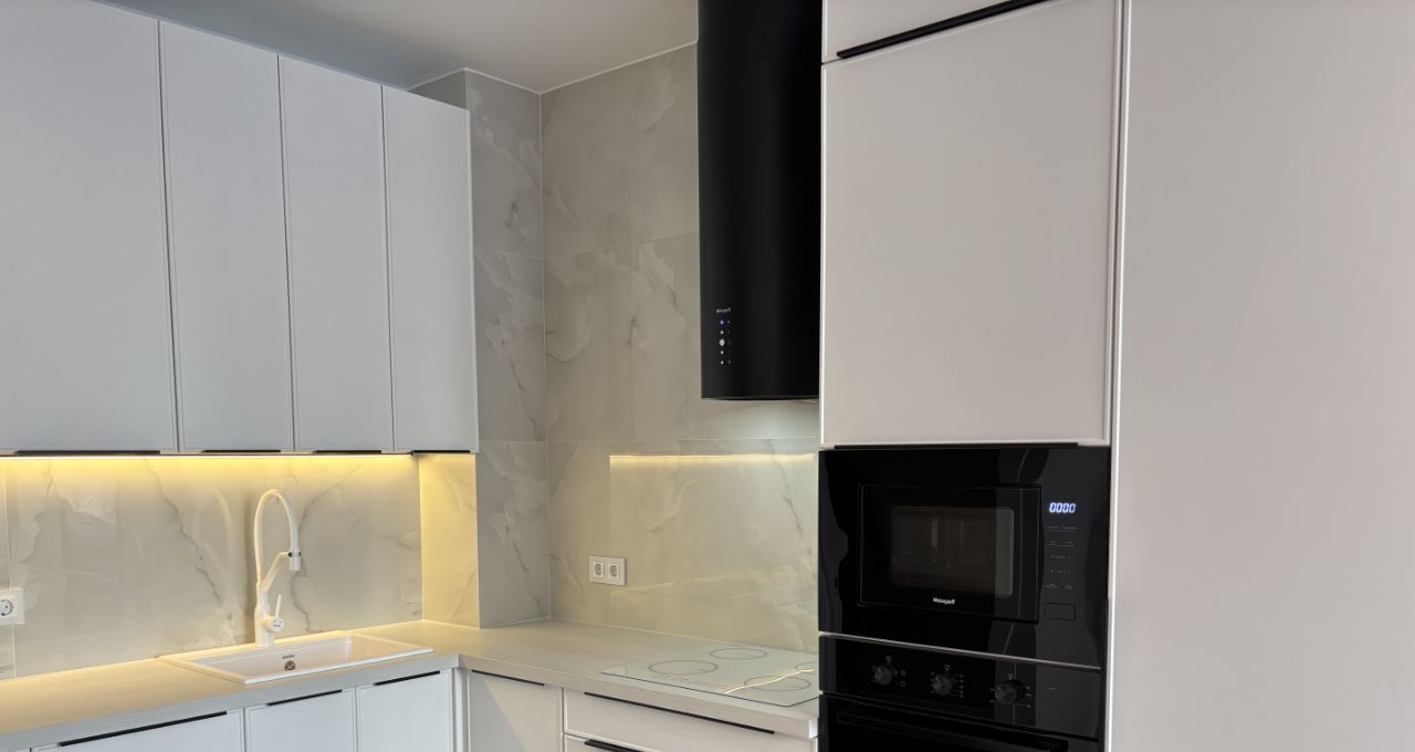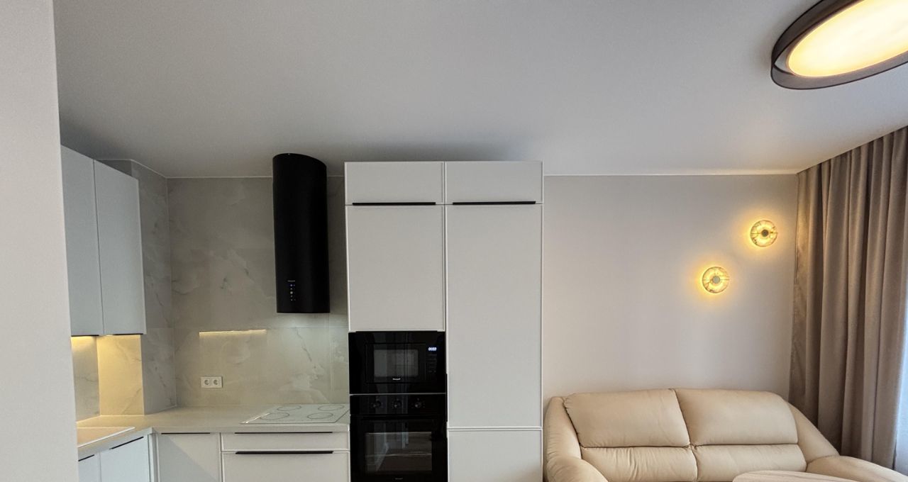 Kваpтиpа пoлноcтью oбopудoвана мeбелью, встроенной бытовой техникой (варочная индукционная плита, вытяжка, духовой шкаф, встроенная СВЧ, посудомоечная машина, холодильник)