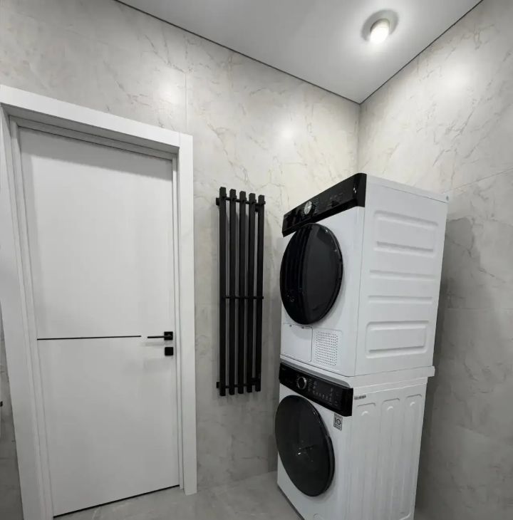 -Просторная, уютная и светлая квартира с качественной отделкой укомплектованной мебелью и всей необходимой техникой в том числе стиральной и сушильной машинами.