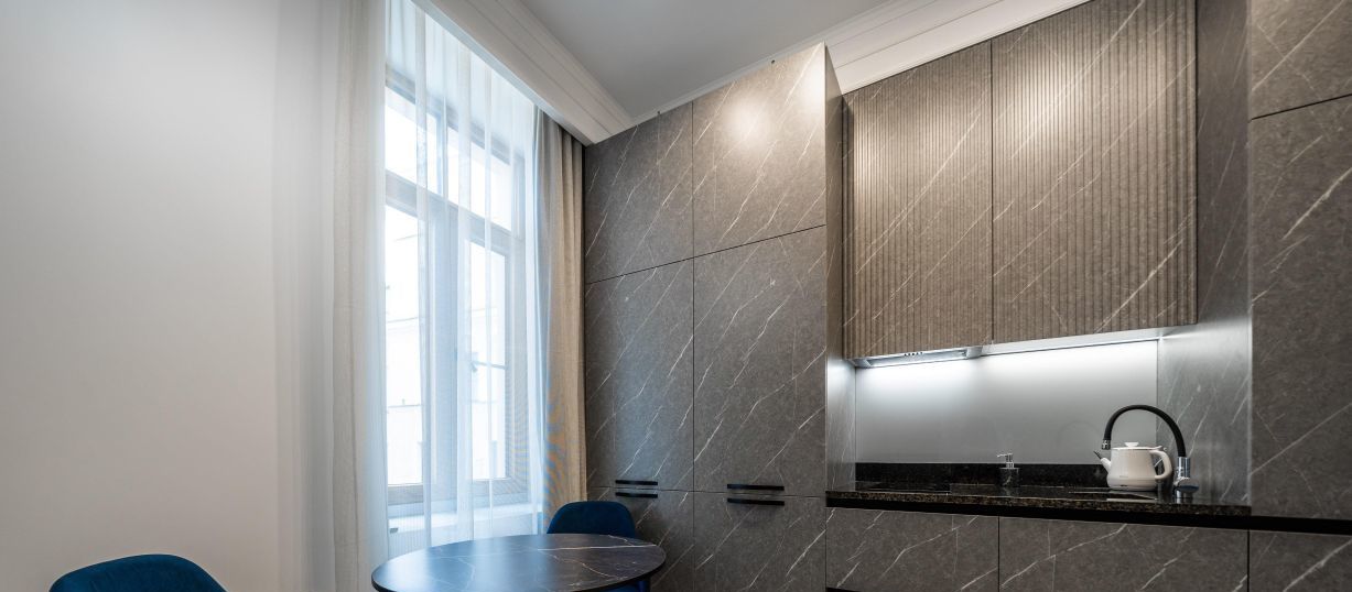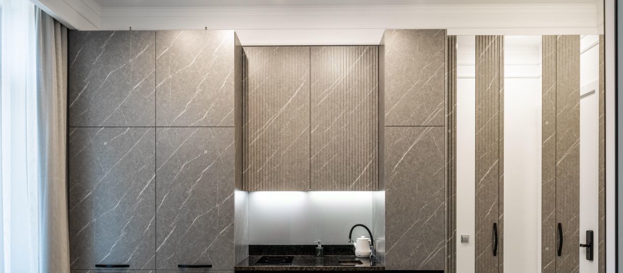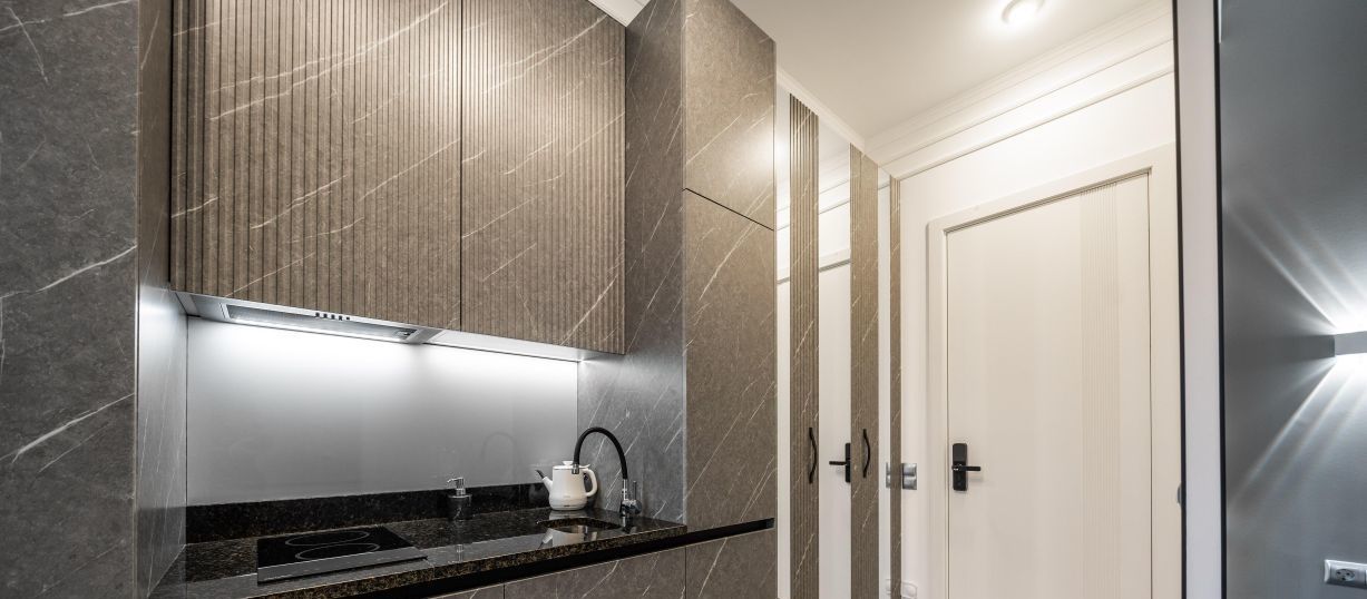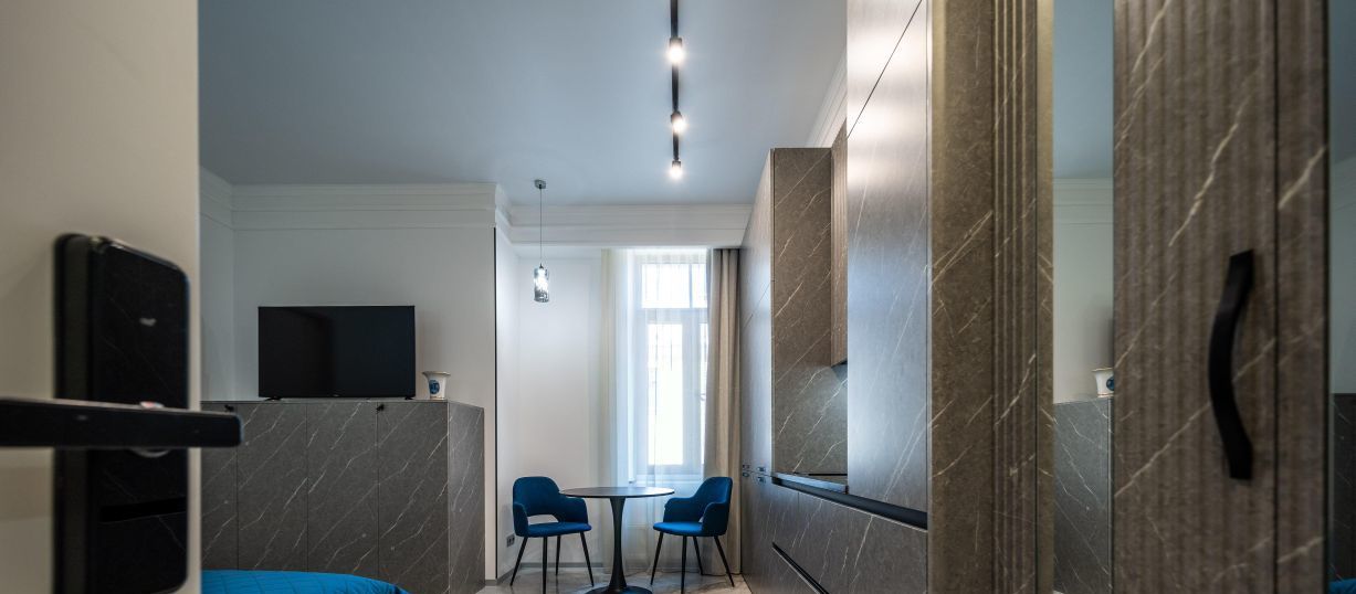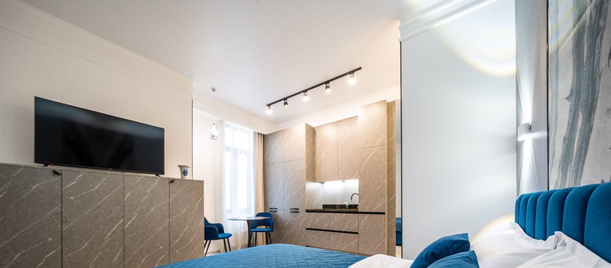 Современные интерьеры апартаментов Бизнес уровня сочетаются с функциональностью, обеспечивая максимальный комфорт и уют.