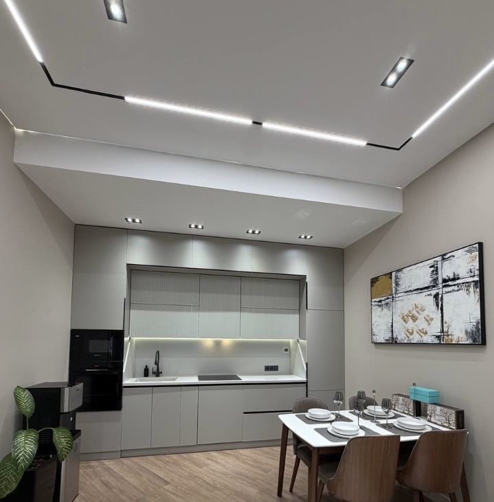 Большая гостиная-кухня: Единое стильное пространство для отдыха, приёма гостей и семейных ужинов.