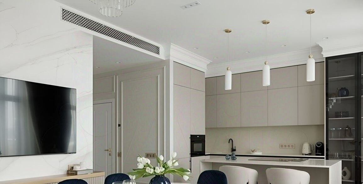 Полностью укомплектована всей необходимой техникой: плита, духовка, холодильник, посудомоечная, стиральная и сушильные машины, кондиционер.