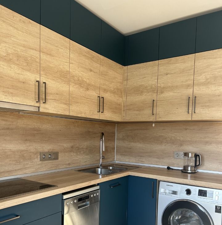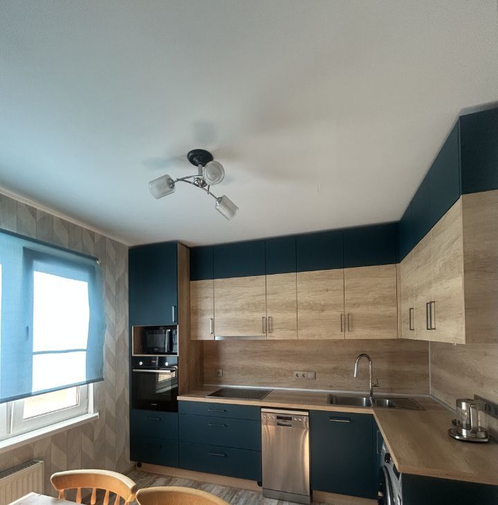В квартире выполнен евроремонт, поэтому всё выглядит современно и стильно. Вся необходимая мебель уже есть как на кухне, так и в комнате. На кухне установлена качественная техника: холодильник, посудомоечная машина и стиральная машина. В комнате есть телевизор и кондиционер для комфортного отдыха. Санузел раздельный, с ванной, что очень удобно.