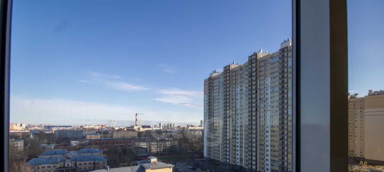 Планировка квартиры включает в себя кухню, просторную изолированную комнату, гардеробную и раздельную ванную комнату. Окна выходят на набережную и Большой Обуховский мост.