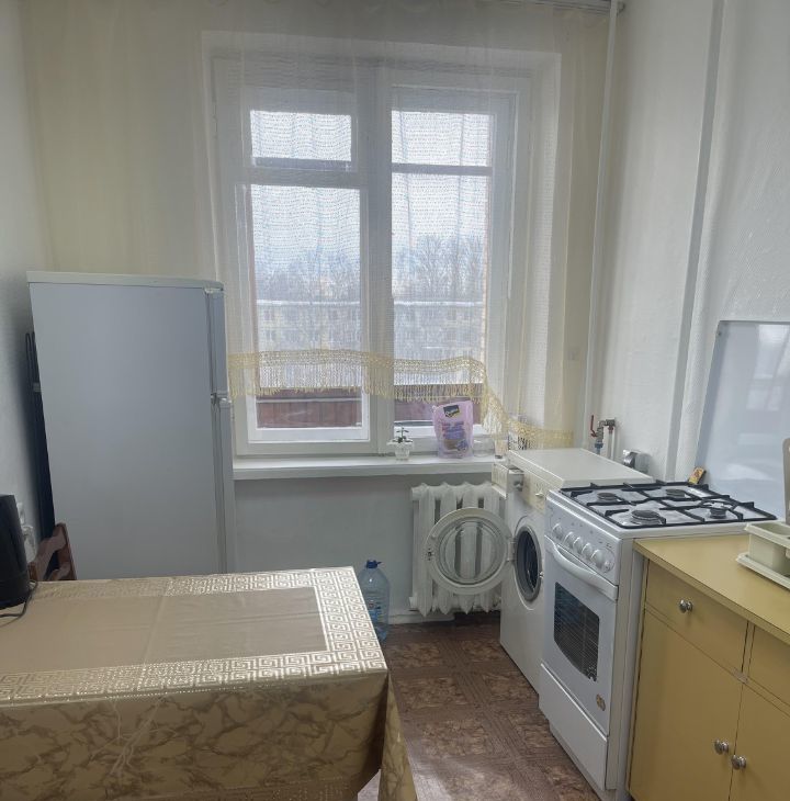 В квартире сделан косметический ремонт. Здесь есть все необходимое для комфортного проживания: холодильник, телевизор и стиральная машина. Мебель расположена как в комнате, так и на кухне, а санузел совмещенный, оборудован ванной. Из окон открывается вид на улицу, а лоджия добавляет дополнительное пространство для отдыха.