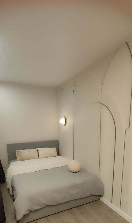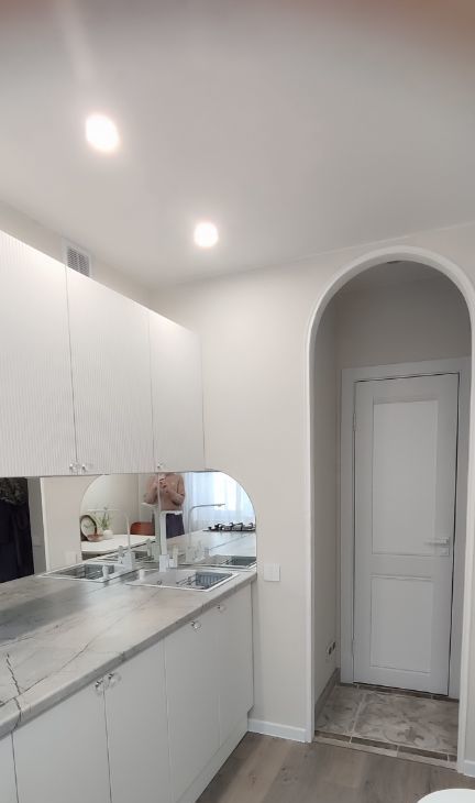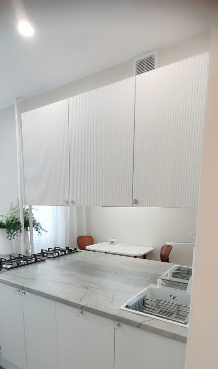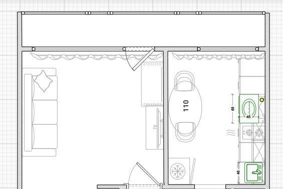 За счёт удачной планировки и правильных пропорций квартиры, наш дизайнер разместил всё необходимое для комфортной жизни. Двухспальная кровать 140см, диван, рабочее место, зона ТВ, полноценная кухня, где предусмотрена вся необходимая техника, и обеденная зона(см план)