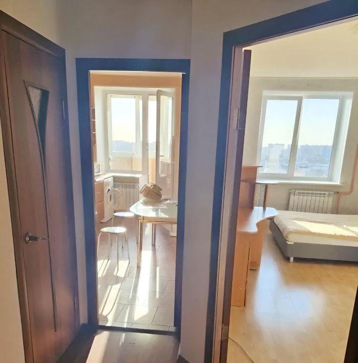 Функциональная планировка: Большая кухня и просторная комната (около 18 м²), где легко зонировать пространство