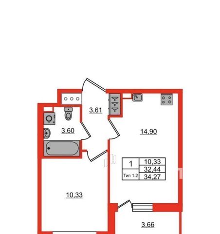 1-к кв. Санкт-Петербург Новолитовская ул., 14 (33.0 м²)