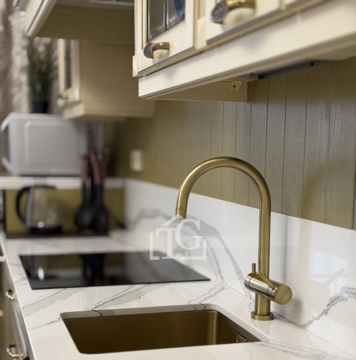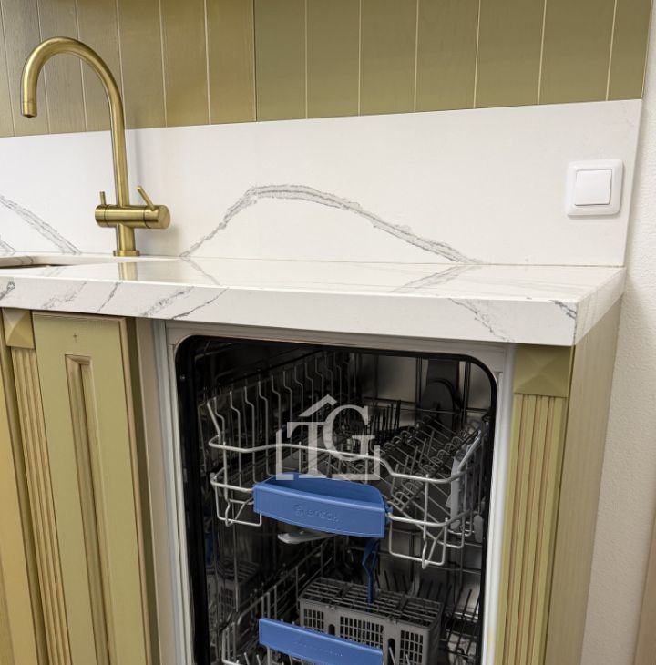Квартира оснащена техникой, необходимой для комфортной жизни: установлена система фильтрации проточной воды, фильтр под мойкой для питьевой воды, телевизор, холодильник, новые кухонные принадлежности, посуда для еды и для готовки, индукционная плита, духовой шкаф, микроволновая печь, чайник, холодильник, небольшой телевизор для создания атмосферы. Кухонная столешницы выполнена из искусственного камня. Для бытовых нужд предусмотрены: пылесос и стиральная машина в ванной комнате.