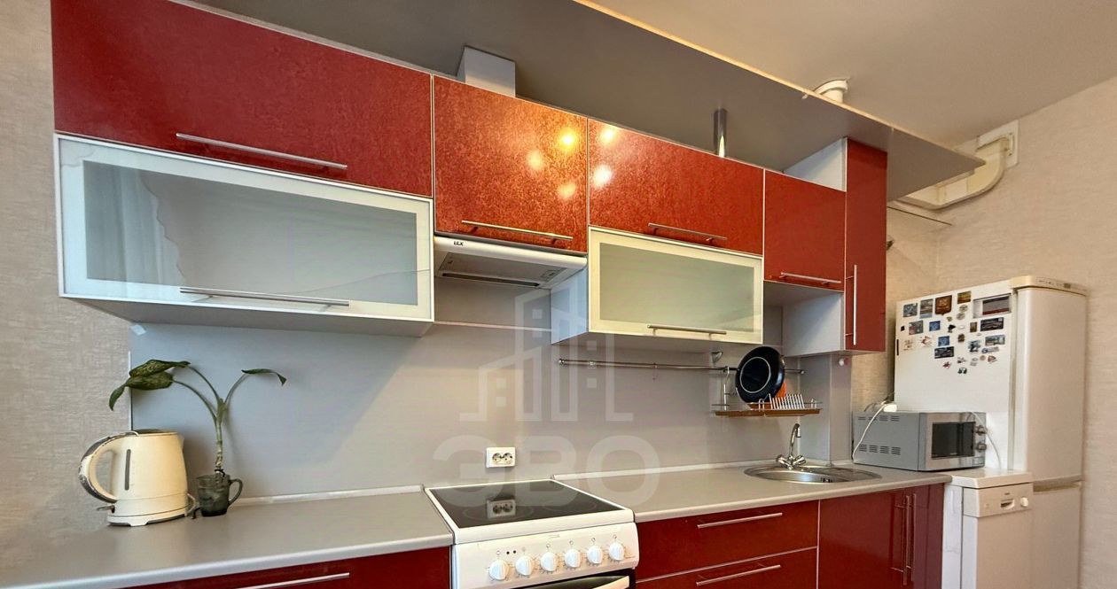 Квартира оборудована кухонным гарнитуром, мебелью и бытовой техникой. Есть холодильник, стиральная машина, варочная панель, микроволновая печь. Окна выходят на улицу. Есть балкон и гардеробная.