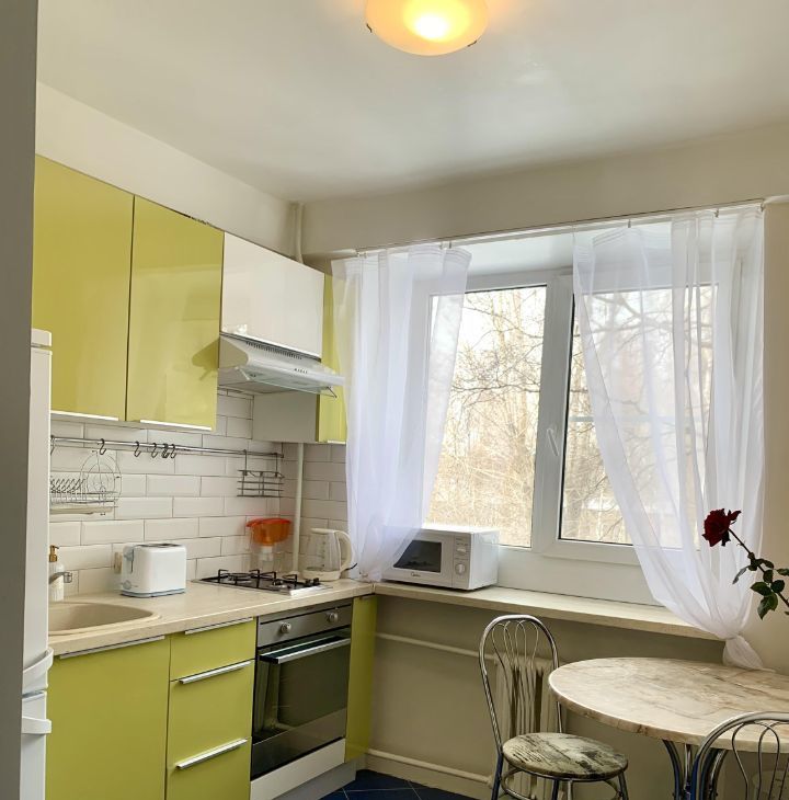 Дом: окна на тихий зеленый двор, 4 этаж Отдельная кухня: газовая плита, холодильник, микроволновка, тостер, чайник Санузел: ванная (не душевая кабина), стиральная машина, совместный санузел Спальные места: 1. Кровать 140200 см (подойдет для двоих)2. Раскладной диван: 100200 см Техника: телевизор SMART-TV, Wi-Fi Рабочее место: журнальный столик у дивана. По запросу: посуда, фен, утюг и др.