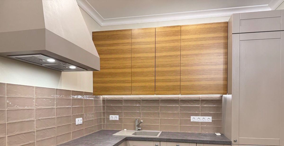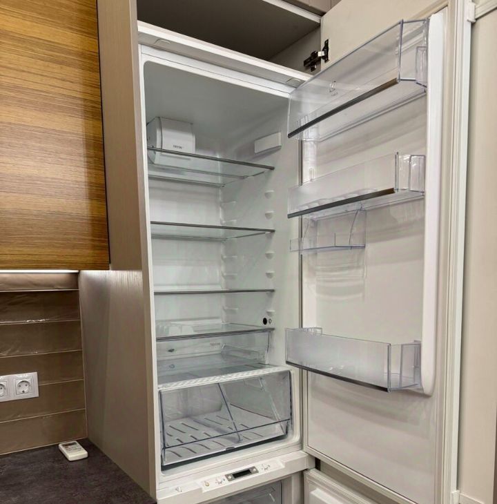 Из техники: большой встроенный холодильник, духовка, посудомоечная машина,