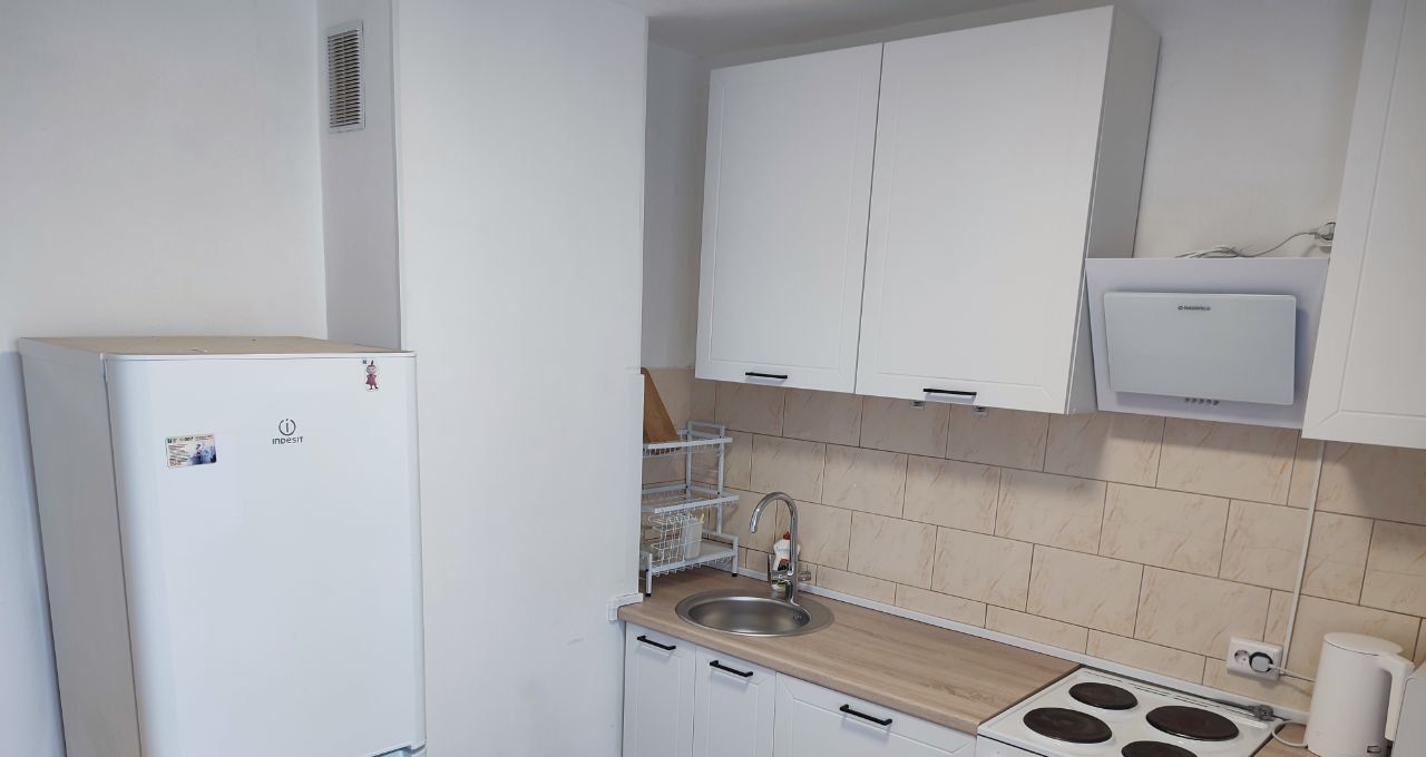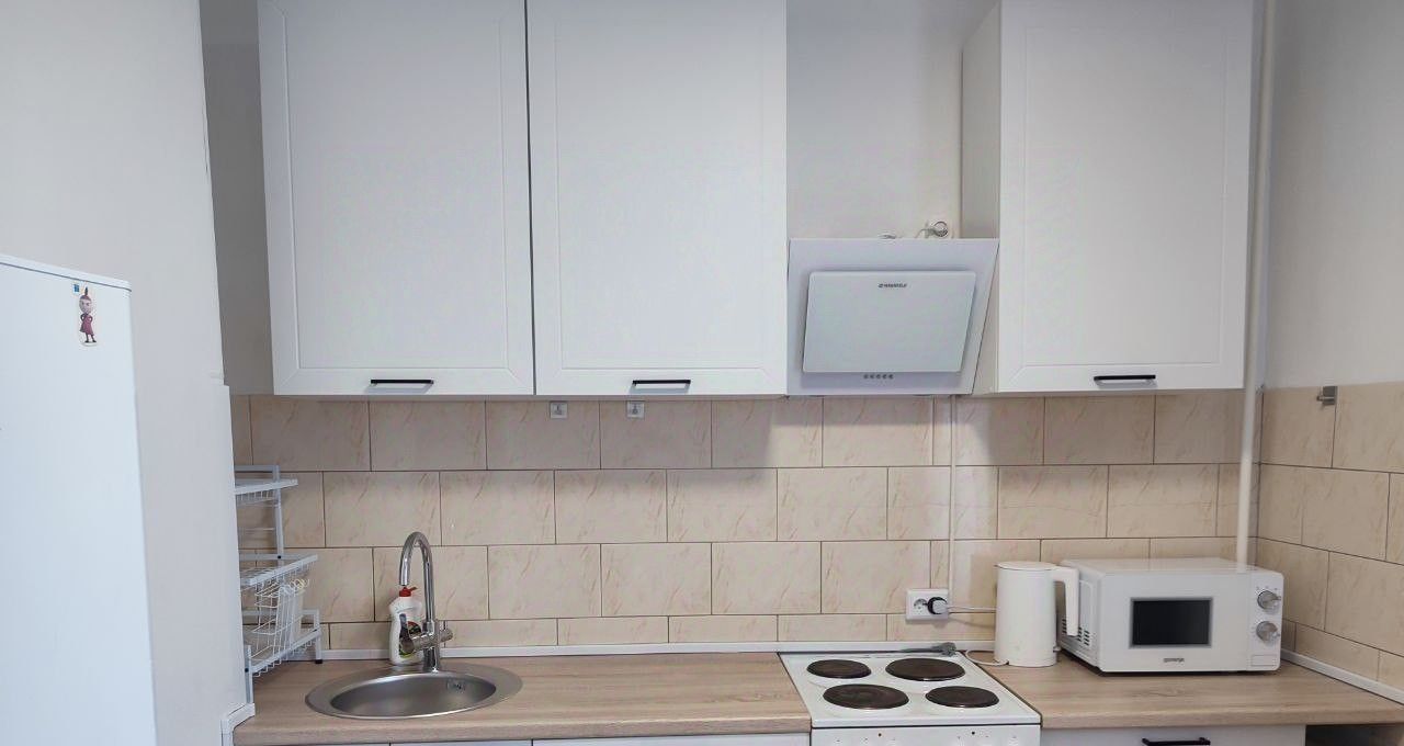 В квартире есть все необходимое для комфортного проживания: кухня оборудована плитой с духовкой, вытяжкой, микроволновкой, чайником, посудомоечной машиной, холодильником.