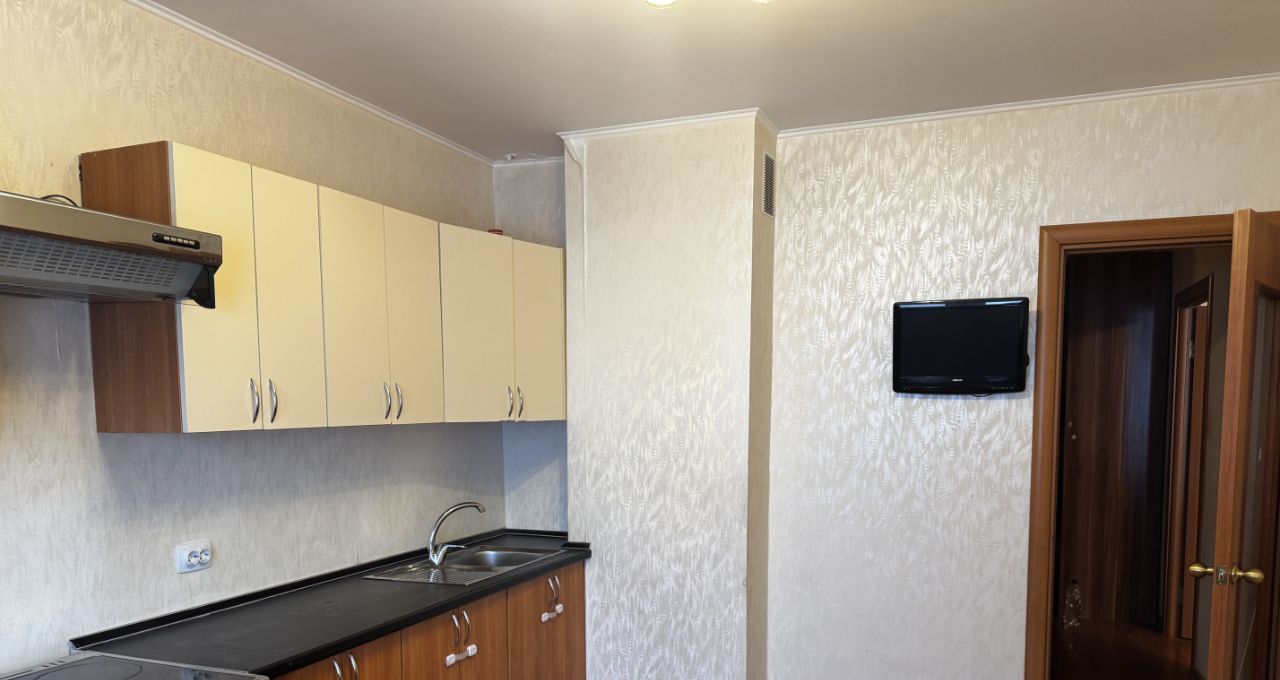 Однокомнатная квартира с большой кухней, в комнате вместительный шкаф-купе и дополнительные места для хранения, в том числе в прихожей. Квартира оборудована всем необходимым, кровать/диван может быть приобретен в счёт аренды, другие улучшения также обсуждаются, дом 2005 г п, в общий коридор на площадке вход по ключу.