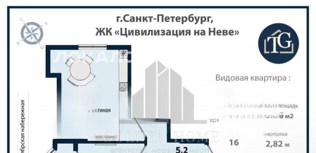 1-к кв. Санкт-Петербург Октябрьская наб., 40 (44.35 м²)