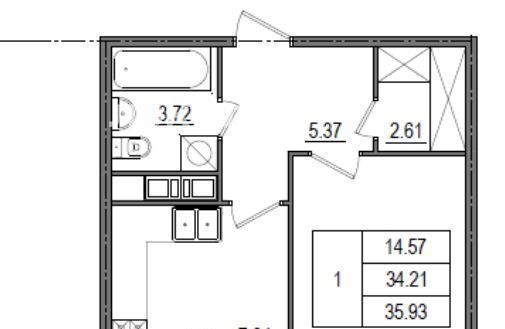 1-к кв. Санкт-Петербург Октябрьская наб., 86К2 (36.0 м²)
