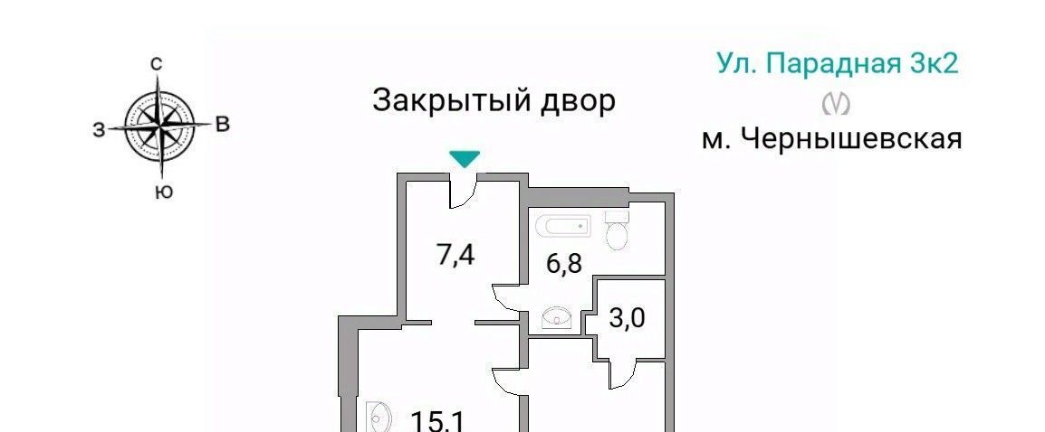 1-к кв. Санкт-Петербург Парадная ул., 3к2 (50.0 м²)
