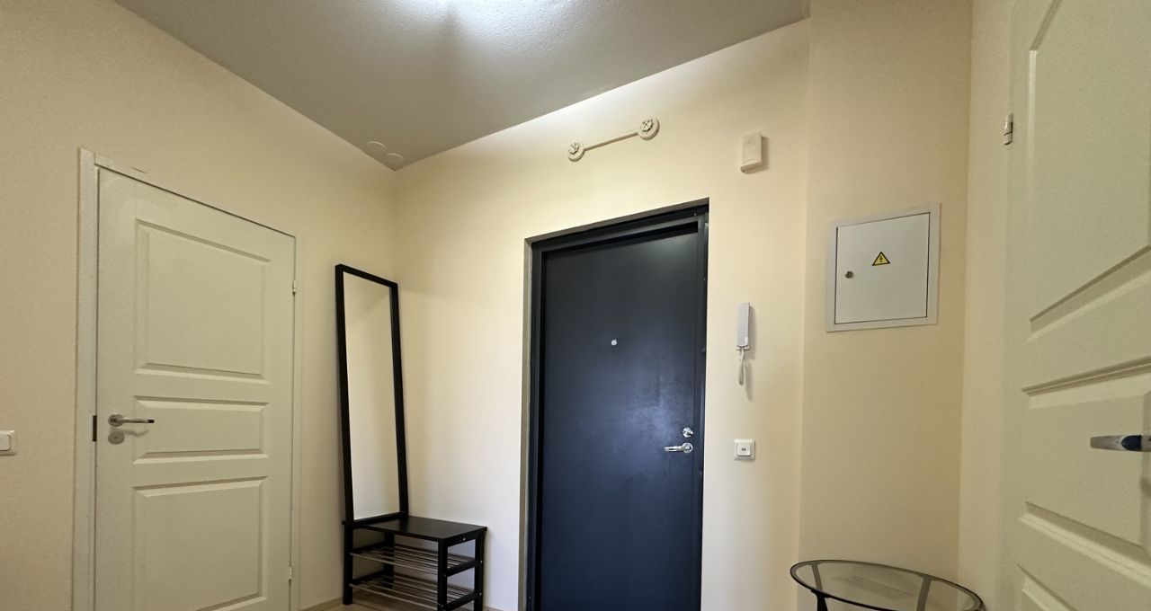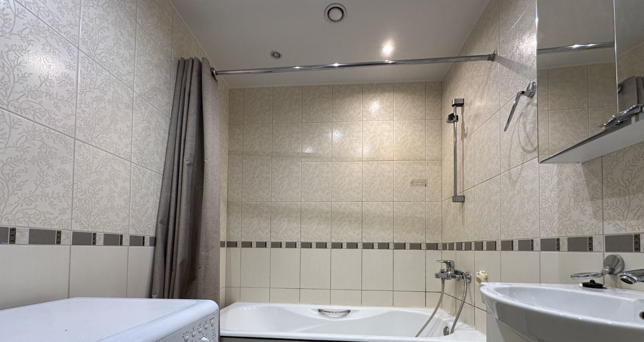 Ванная комната совмещенная, оборудована современной сантехникой и душевой кабиной. В квартире есть гардеробная, шкафы и телевизор.