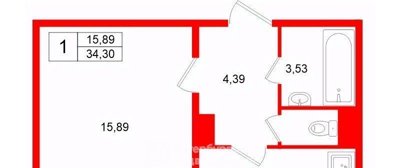 1-к кв. Санкт-Петербург Парашютная ул., 31к2 (34.3 м²)