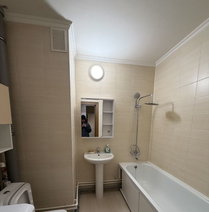 Санузел: новая душевая + стиральная машина. Ремонт от застройщика.