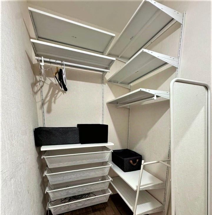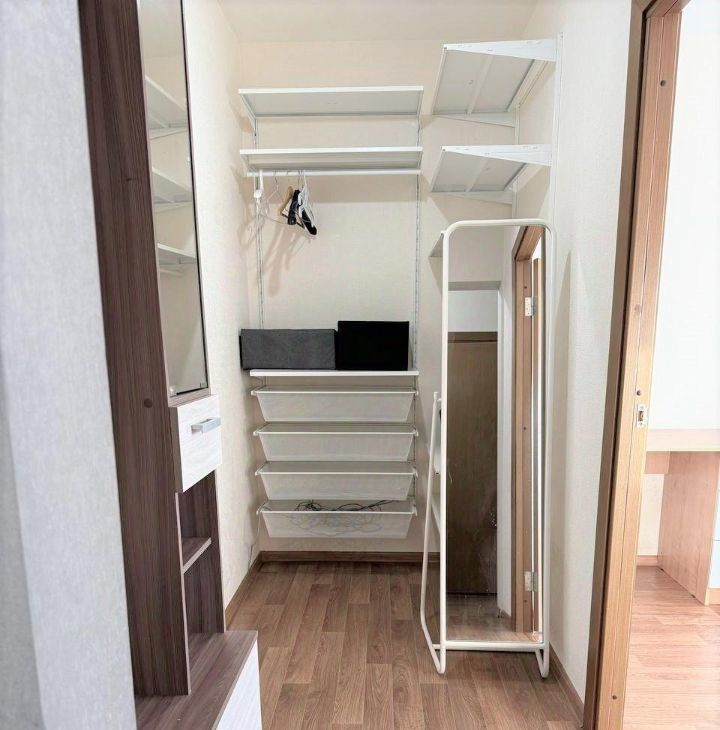 В квартире удобная система хранения вещей: отдельная гардеробная (икеа), полки на балконе, два вместительных ящика в диване.