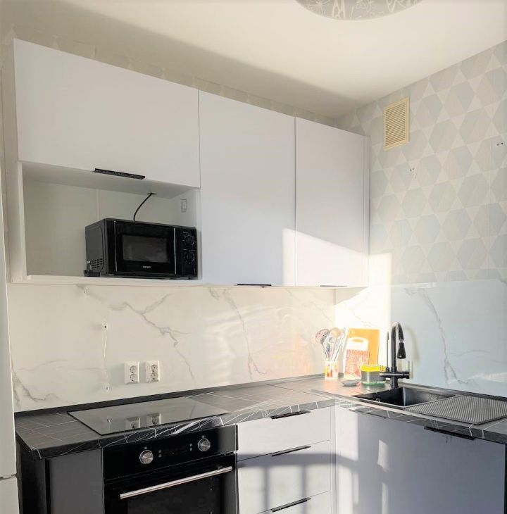Есть всё необходимое для комфортного проживания: новая оборудованная кухня (варочная панель, духовой шкаф, посудомоечная машина, электрический чайник, микроволновая печь), большой смарт телевизор МІ. Новая тихая стиральная машина.