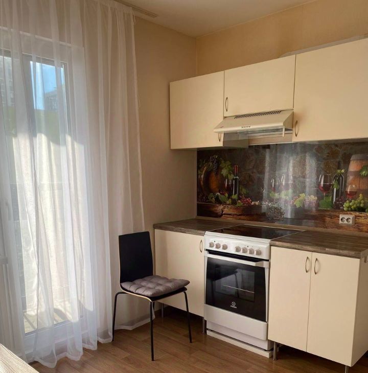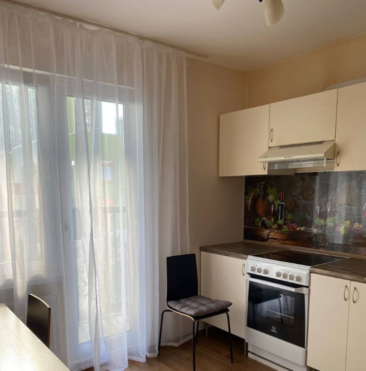 Сдаётся уютная однокомнатная квартира с евроремонтом, расположенная в современном доме 2017 года постройки. Общая площадь квартиры составляет 35 кв. м, жилая площадь — 14 кв. м, а кухня — 10 кв. м. Квартира находится на 3 этаже 25-этажного дома. Высокие потолки (2.7 метра) и окна, выходящие во двор, добавляют пространство и свет.