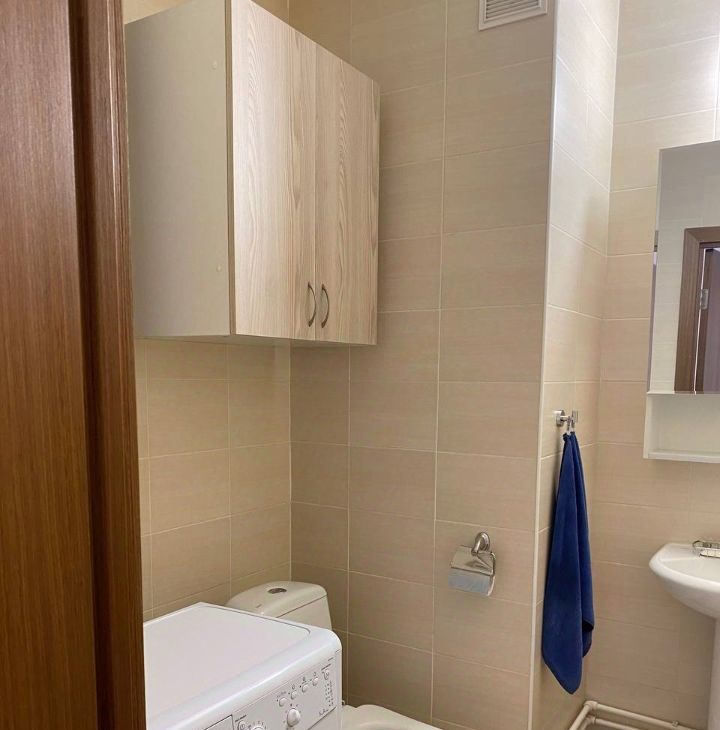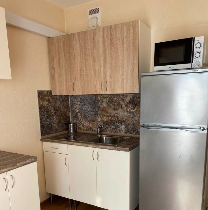 В квартире есть всё необходимое для комфортного проживания. Просторная комната обставлена мебелью, на кухне есть современная техника: холодильник, телевизор и стиральная машина. Санузел совмещённый, оборудован ванной. Дополнительно к квартире идёт лоджия, где можно наслаждаться свежим воздухом. Подключён интернет.