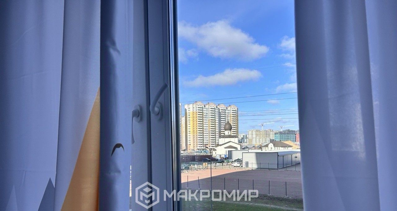 Есть застеклённый балкон, а из окон открывается приятный вид на церковь, что добавляет квартире света и атмосферы.