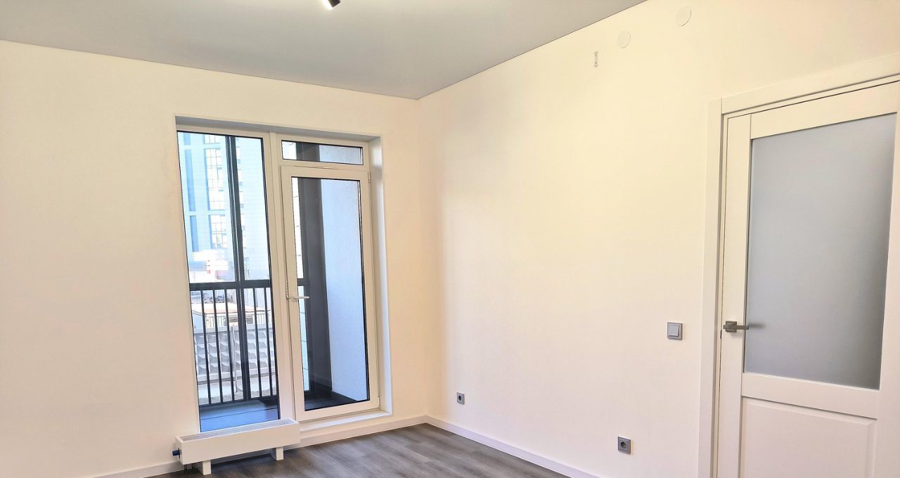 Просторная кухня гостиная с выходом на застеклённую панорамную лоджию, уютная небольшая спальная комната. Санузел с подогревом пола.