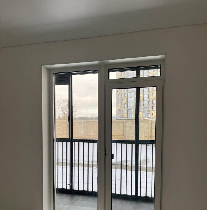 Балкон с панорамным остеклением, что позволяет использовать его как пространство для отдыха.