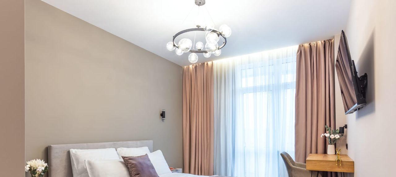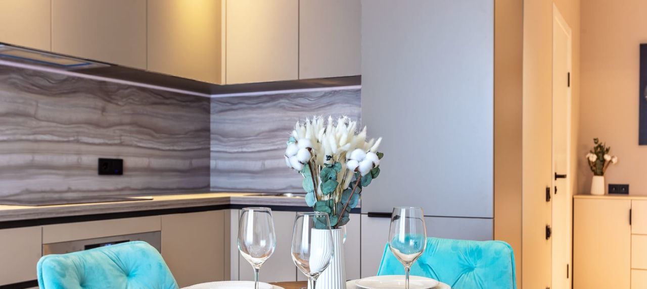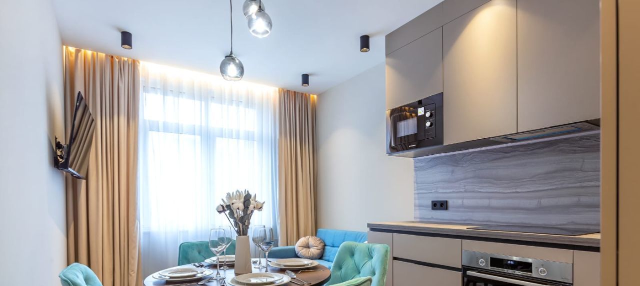 Интерьер квартиры выполнен с учётом всех современных тенденций. Просторная кухня оборудована всей необходимой мебелью и техникой, включая холодильник и посудомоечную машину. В комнате также есть вся необходимая мебель для комфортного проживания. Ванная комната оснащена душевой кабиной и современной сантехникой. В квартире подключён интернет, поэтому можно работать и отдыхать с комфортом.