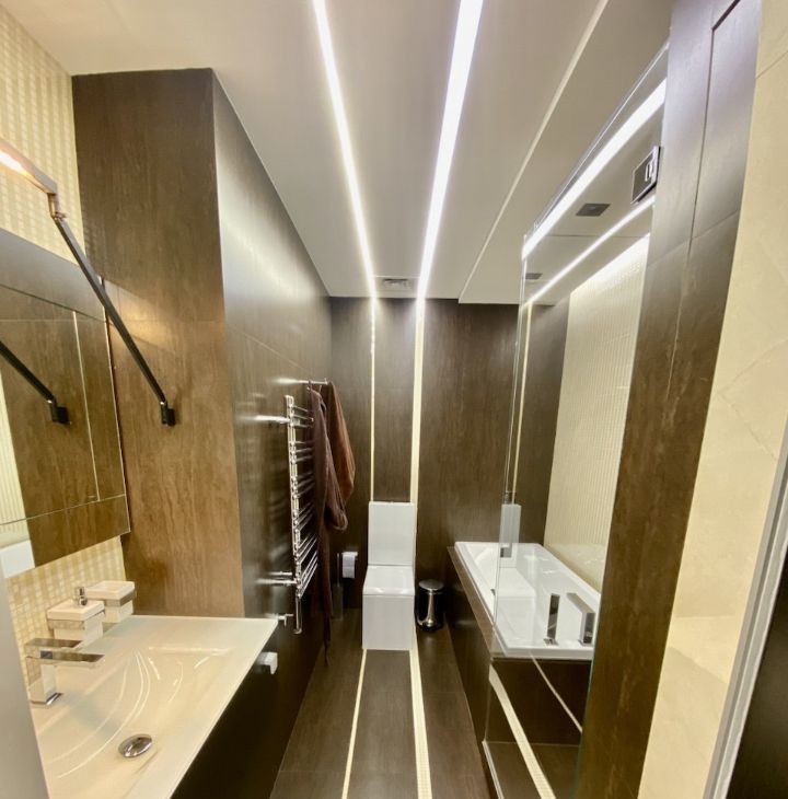 Авторский дизайнерский ремонт с использованием премиальных материалов, продуманное зонирование и безупречная эстетика пространства.