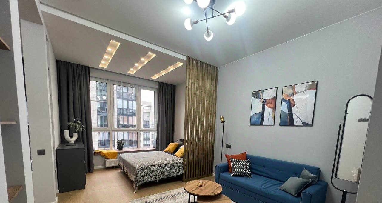Стильная 1-комнатная квартира в Балтийской жемчужине готова к вашему переезду : панорамный вид и залив в 20 минутах.