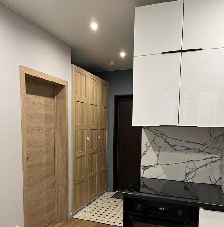Техника: посудомоечная машина, стиральная машина, индукционная варочная поверхность, духовка, полноценный большой холодильник встроенный, телевизоры, электрический чайник.