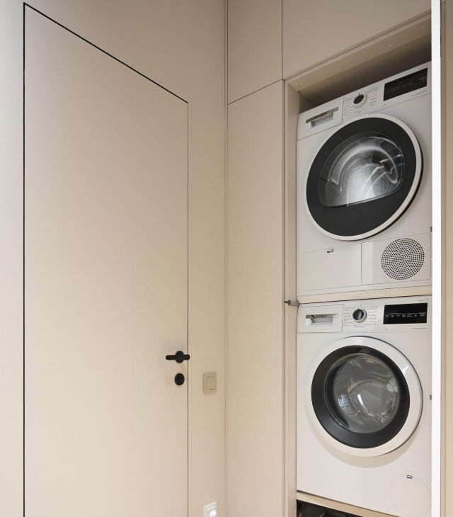 Полностью оснащена техникой Bosch, необходимой для комфортного проживания: 2 кондиционера, холодильник, духовка-микроволновка, посудомоечная машина, стиральная и сушильная машины, робот-пылесос с подключением к воде. В ванной и прихожей установлен теплый пол, шторы блэкаут.
