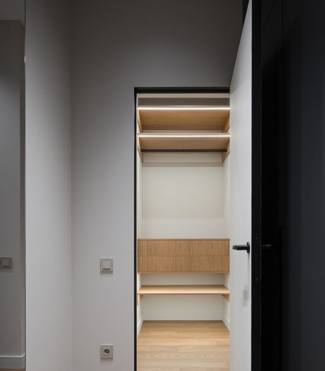 Большое количество мест для хранения: гардеробная + 2 больших шкафа.