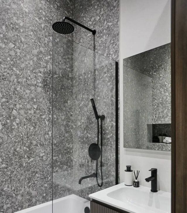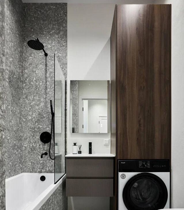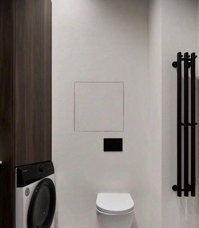 В санузле установлена система контроля протечки воды с управлением со смартфона, а так же стиральная машина с возможностью сушки белья.