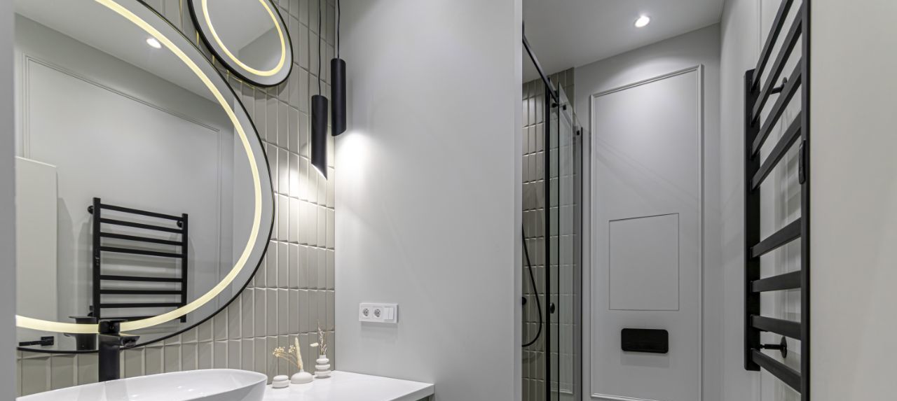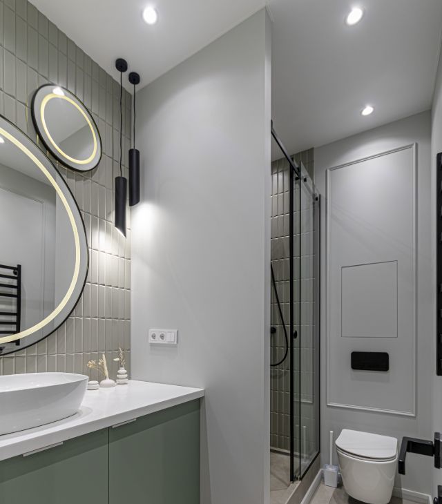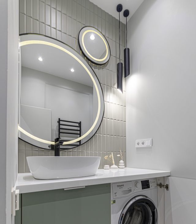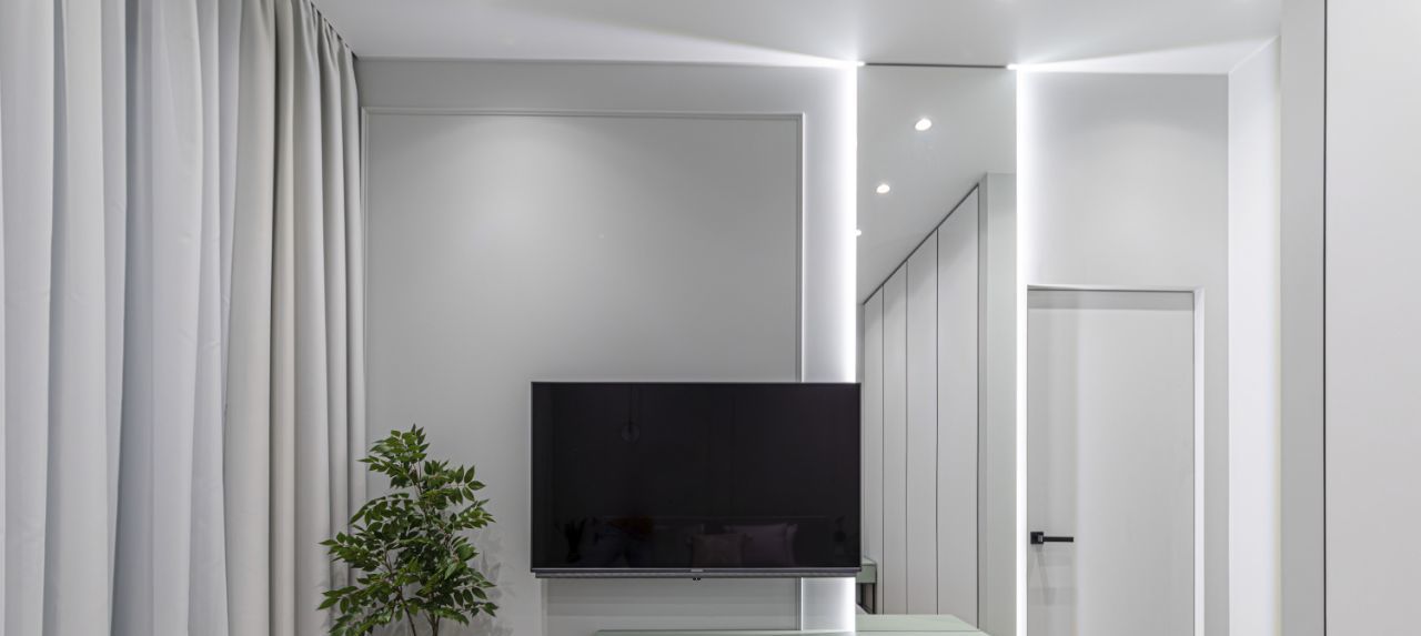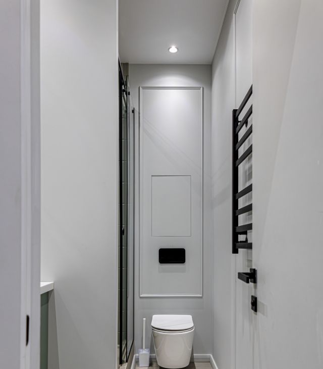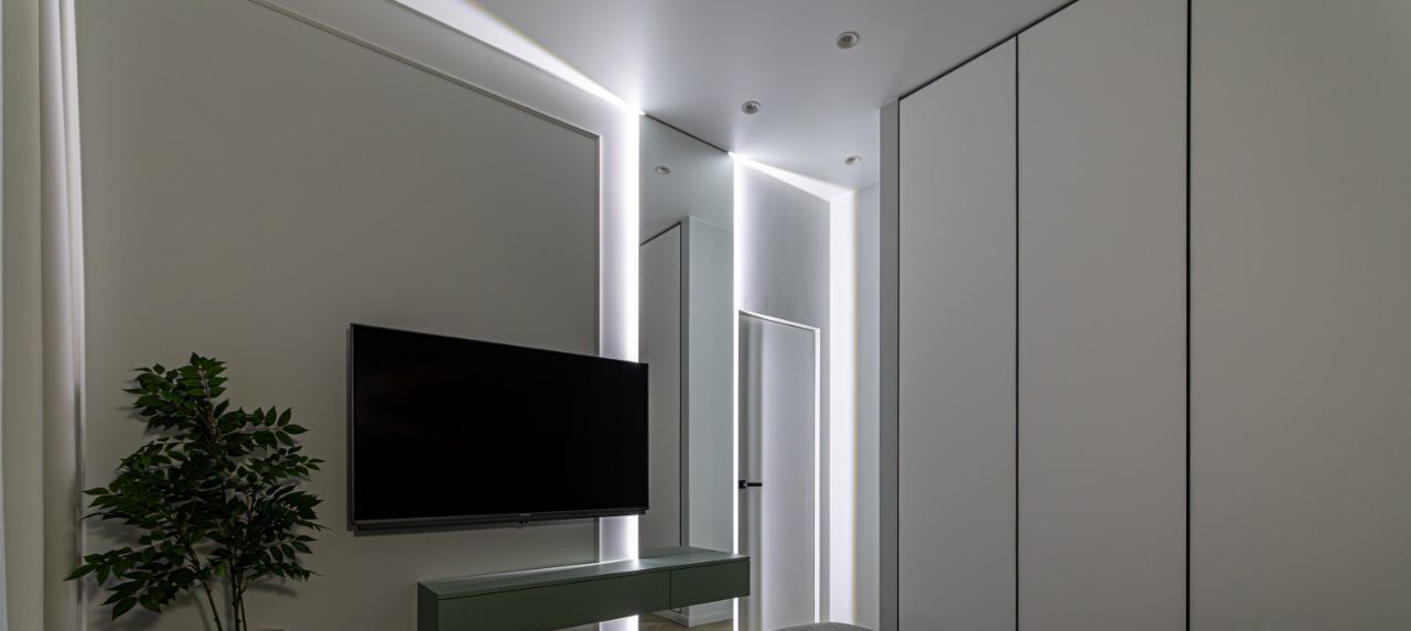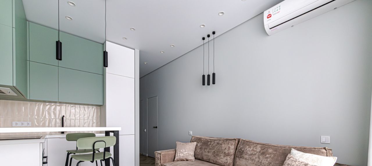 В квартире установлены кондиционеры в каждом помещении, теплые полы, конвекторы в полу, видеодомофон, также предусмотрено множество сценариев освещения для любого настроения и случая, много мест хранения.