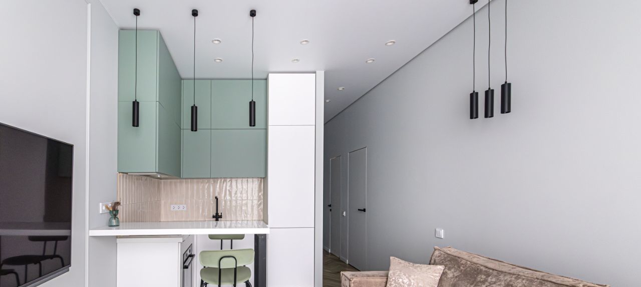 В квартире общей площадью 40 метров выполнен дорогостоящий дезайнерский ремонт. Продуманная планировка квартиры с отдельной оборудованной гардеробной, уютной спальней и функциональной кухней с выходом на лоджию-кабинет.