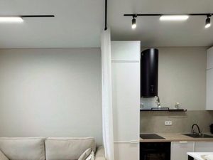 Квартира полностью оборудована встроенной мебелью, техникой и шкафами.