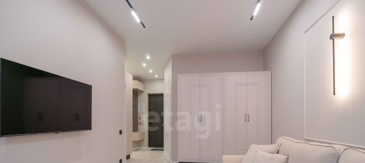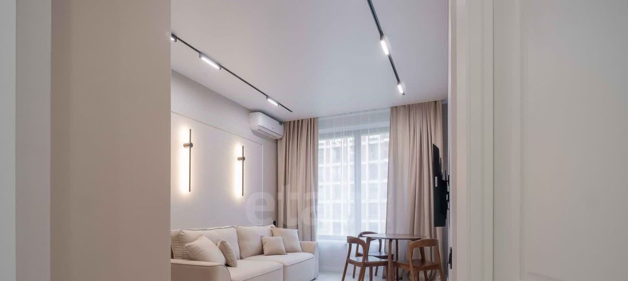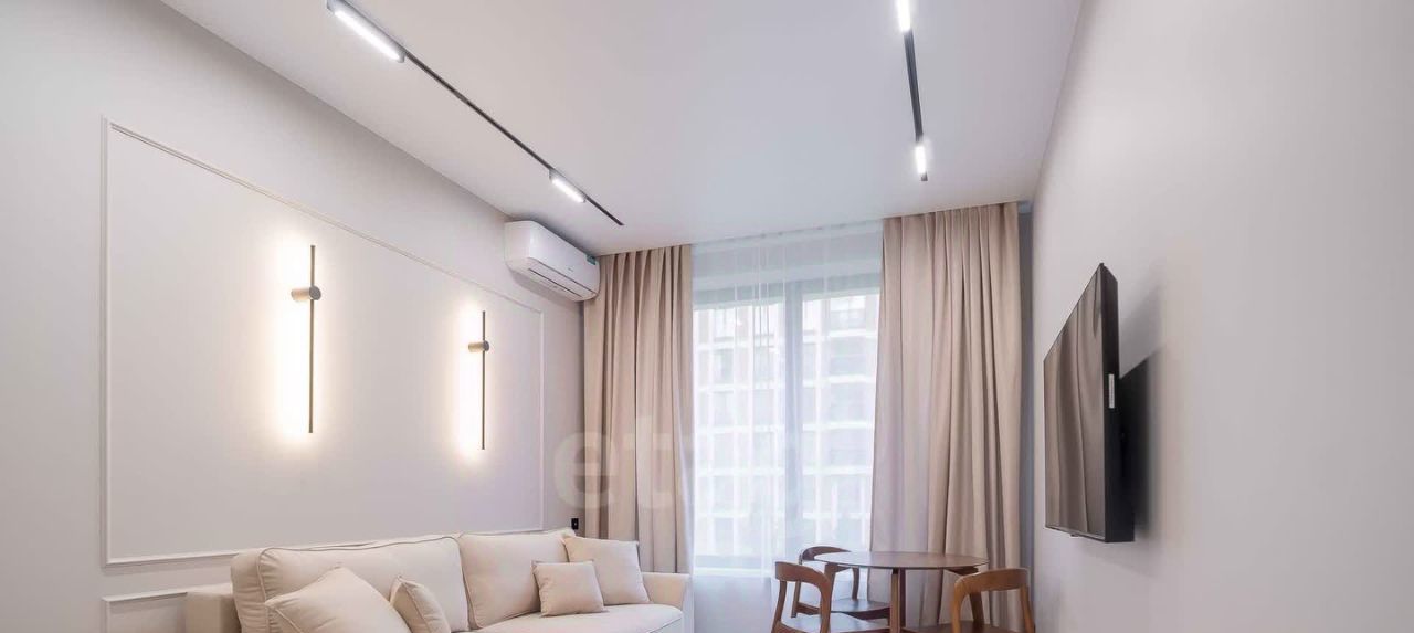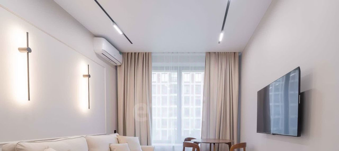 В квартире есть все необходимое для проживания, включая два спальных места (кровать с ортопедическим матрасом и гостевой диван), телевизор с функцией смарт, два шкафа, кондиционер, посудомоечную машину, встроенный холодильник, духовой шкаф и т.п.