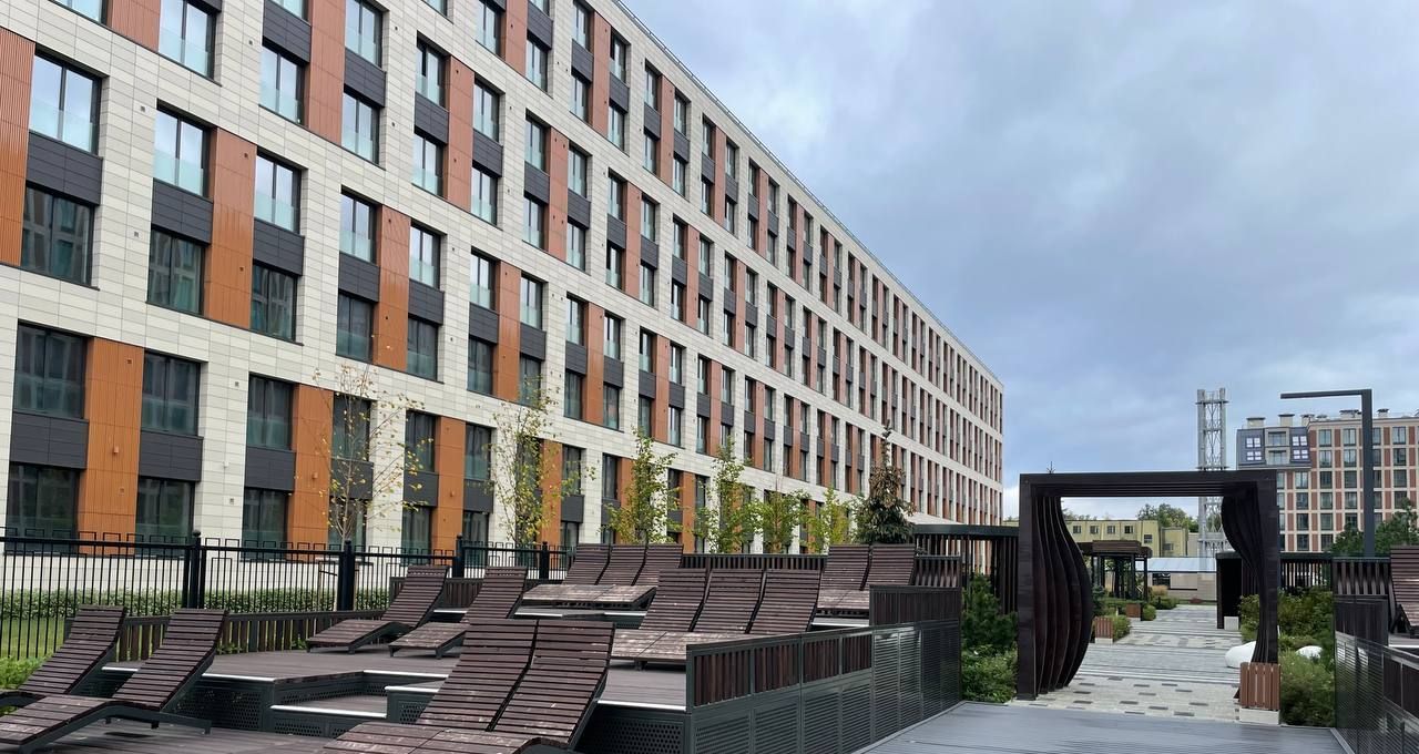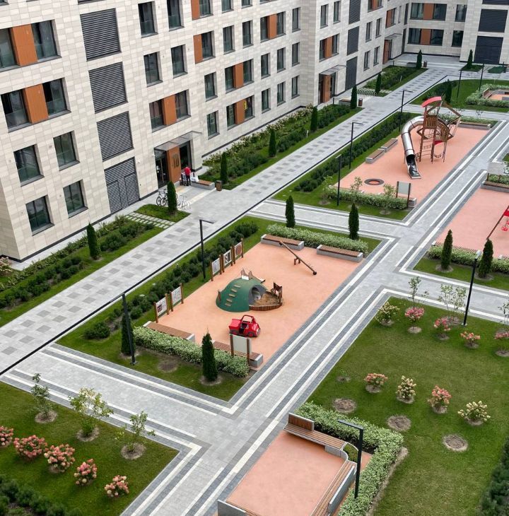 Охраняемая территория, благоустроенный двор, консьерж, зона отдыха с лежаками.