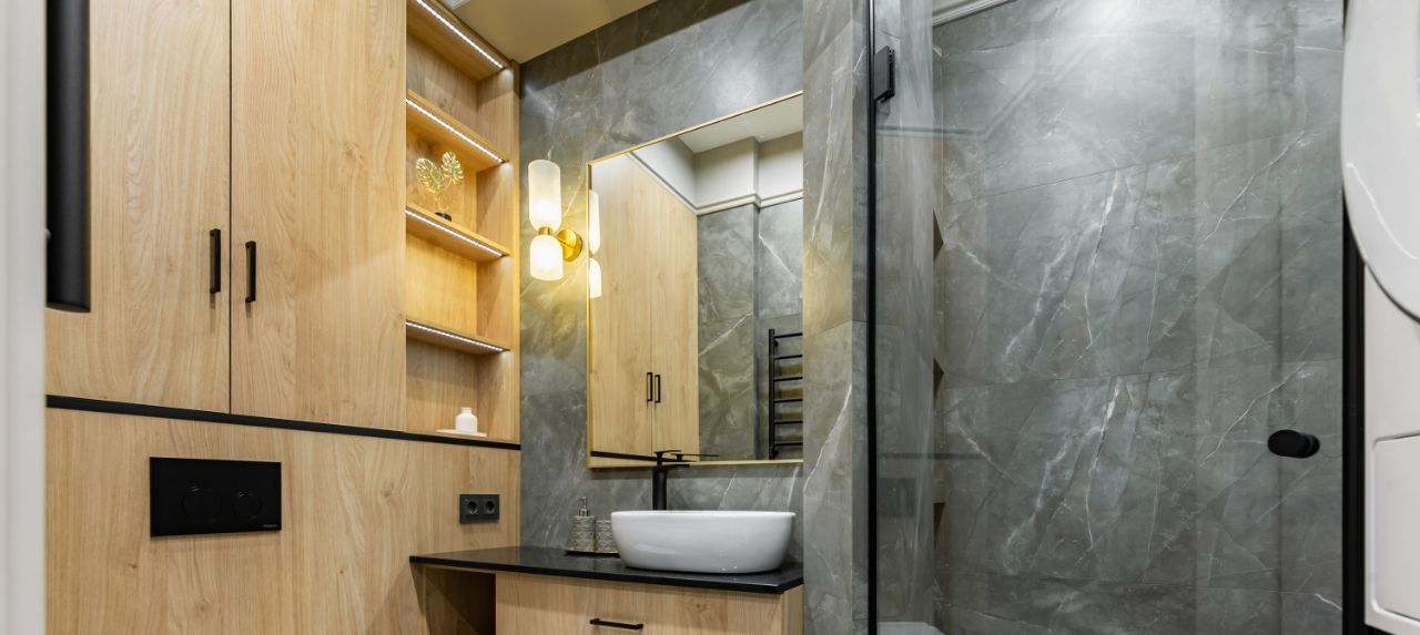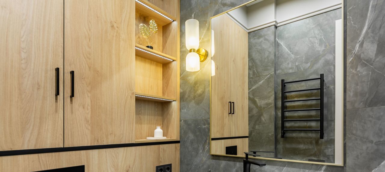 — санузел: панели Egger и плитка